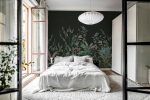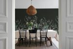Creează un ambient sofisticat cu acest fototapet cu motive vegetale pe fundal negru. Ideal pentru un dormitor sau living modern, aducând un plus de eleganță naturală. Un decor unic și relaxant!