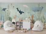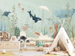 Creează o lume subacvatică fascinantă! Acest tapet decorativ aduce frumusețea oceanului în camera copilului. Design vibrant cu alge marine, balene și alte viețuitoare marine. Perfect pentru un decor original și plin de imaginație.