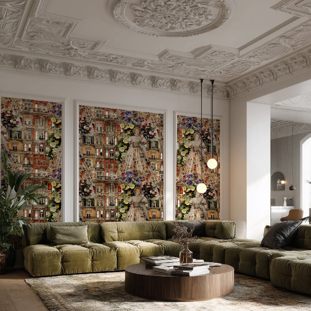 Tapetul „Lady Amelia Windsor”, parte integrantă a colecției exclusiviste Britannia Unchained, surprinde printr-un design seducător și profund, ce pare să ascundă povești nespuse și mistere ascunse în liniile sale fluide și elegante. Privindu-l, simți imediat că ai pășit într-o grădină secretă, acolo unde culorile dansează lent, iar umbrele se strecoară tandru printre petalele bogate și frunzele ondulate.