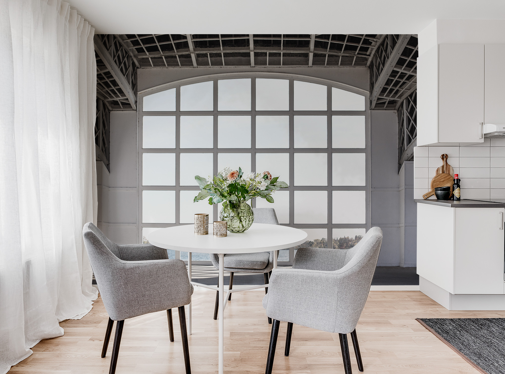 Lakeside este un tapet care te va transporta într-o lume a relaxării și a liniștii. Imaginea cu un decor modern în fața unei ferestre mari cu vedere la lacul liniștit, creează o atmosferă relaxantă și elegantă. Este perfect pentru a crea o ambianță intimă în living sau în dormitor. Lakeside este un tapet de înaltă calitate, ușor de aplicat și rezistent la decolorare. Alege Lakeside pentru a crea o ambianță elegantă și relaxantă în casa ta.