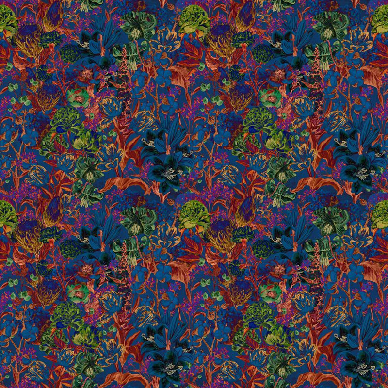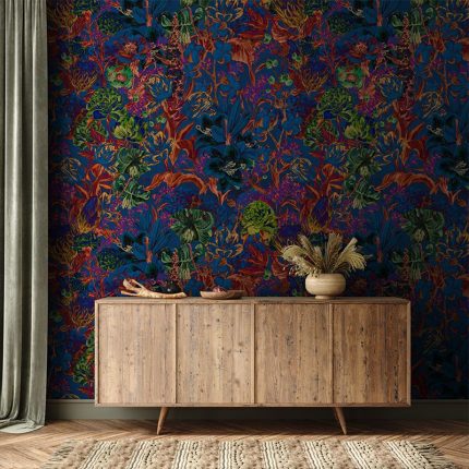 Adăugați o notă de extravaganță și mister spațiului dvs. cu Lava Spring, un tapet cu un design floral bogat, inspirat de natura sălbatică. Nuanțele vibrante de roșu, verde și violet se îmbină armonios pe un fundal albastru intens, creând un efect captivant și vizual. Acest tapet este perfect pentru a crea un ambient eclectic și plin de personalitate, fiind ideal pentru living, dormitor sau hol. Transformați-vă spațiul într-un refugiu vibrant și plin de farmec, cu Lava Spring.