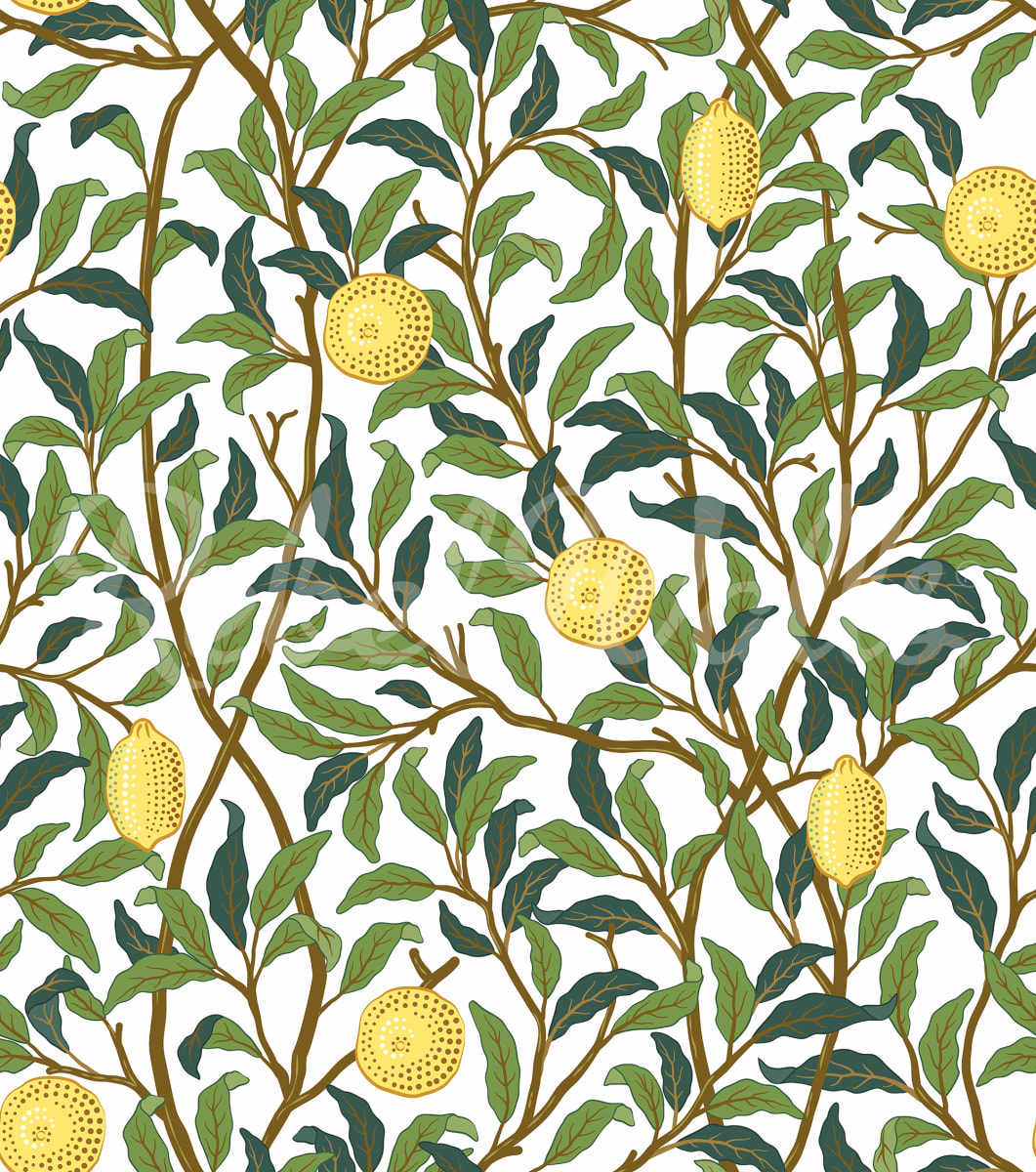 Tapetul Lemon Garden, Day prezintă un aranjament plin de viață de lămâi coapte, așezate printre frunze verzi luxuriante, totul pe un fundal alb strălucitor. Culorile luminoase și vesele evocă un sentiment de căldură și prospețime, perfect pentru bucătării, zone de luat masa sau camere solare. Calitatea detaliată, desenată manual a frunzelor și a lămâilor conferă designului un farmec atemporal, îmbinând natura cu eleganța artistică. Lemon Garden, Day aduce o explozie de frumusețe a naturii în spațiul dvs., creând o atmosferă înălțătoare și primitoare, ideală pentru cei care iubesc un decor proaspăt, de inspirație botanică.