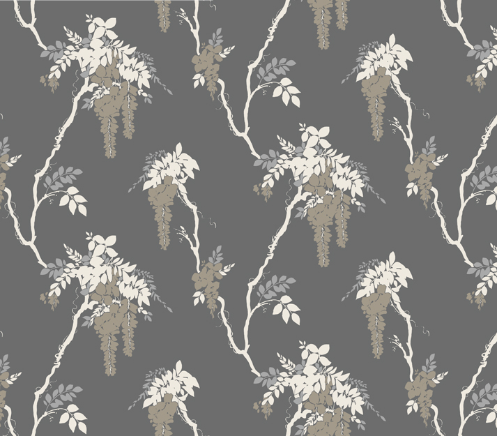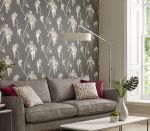Leonora întruchipează designul tradițional al tapetului, cu o paletă de culori izbitoare de gri-argintiu și argintiu metalic.