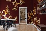 Tapetul uimitor Lightning Clownfish este inspirat din minunile mării și, în mod specific, de modelele uimitoare ale peștelui- clovn fulger. O frumusețe la scară mare atât pe pereți, cât și pe tavanuri! Culoarea Gold are un fundal roșu burgund adânc și un design vibrant în tonuri aurii.