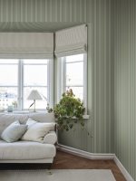 O dungă cool cu un caracter textil moale în culori exclusive care îmbracă pereții atât în mod luxos, cât și stilat. Linn, Green, are linii verzi și negre pe un fundal bej.