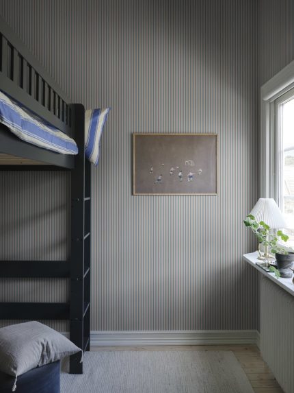 Acest tapet clasic, cu dungi late, se potrivește perfect într-o încăpere modernă, precum și într-o amenajare mai tradițională. Tapet >