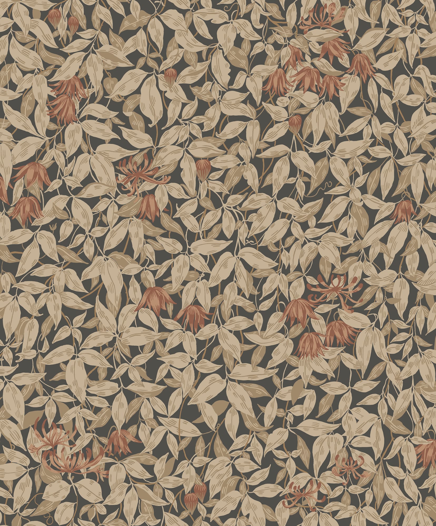 Modelul nostru popular Linnea, cu clematis și caprifoi, aduce caracter și viață în casa dvs. Acest design bine echilibrat liniștește mintea. Linnea, Charcoal, are tonuri pământii de roșu teracotă și maro pe o bază neagră cărbune.
