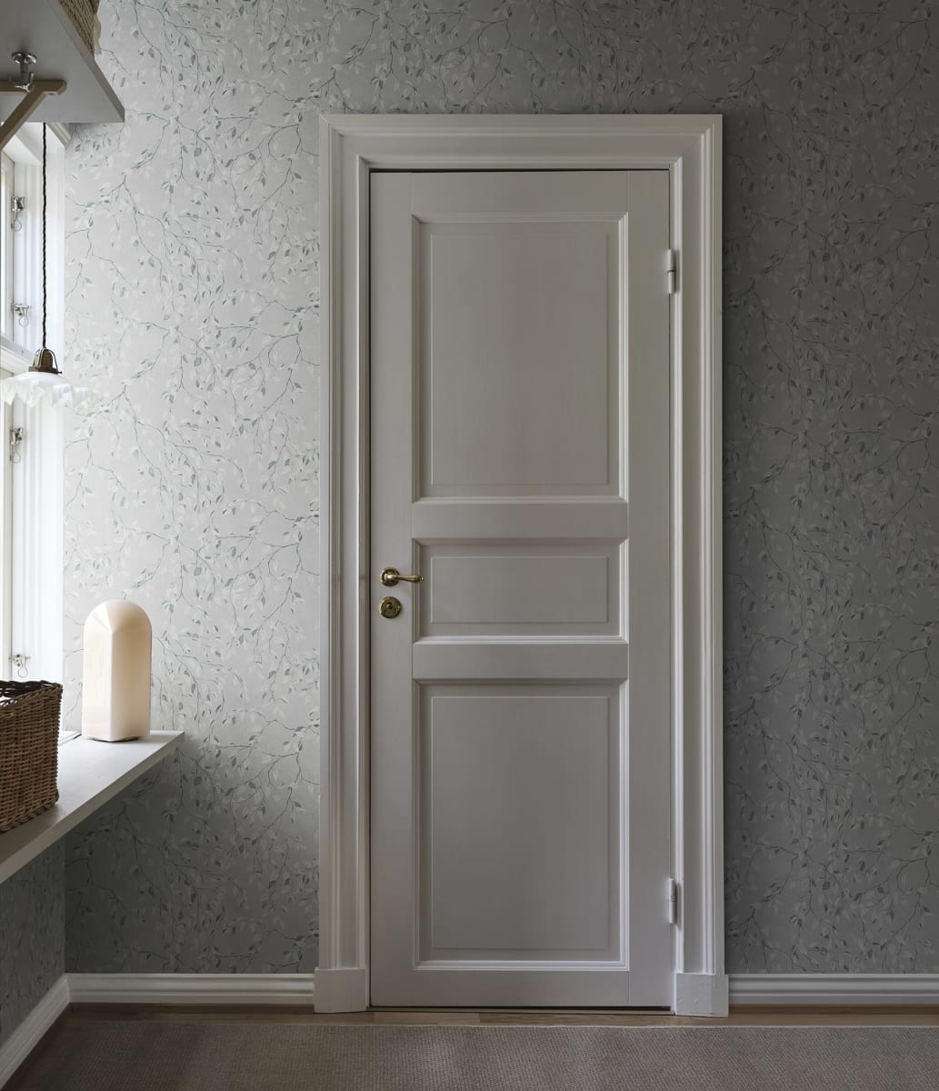 Unii arbori din pădurea de fagi de la Klinteskoven sunt considerați cei mai vechi arbori de fag din Danemarca. Ramurile fragile desenate manual ale fagului pe o suprafață de hârtie aspră reflectă natura nordică sărăcăcioasă și oferă o senzație de materiale naturale. Schema de culori „Misty Blue” are ramuri și frunze în albastru pe un fond albastru deschis.