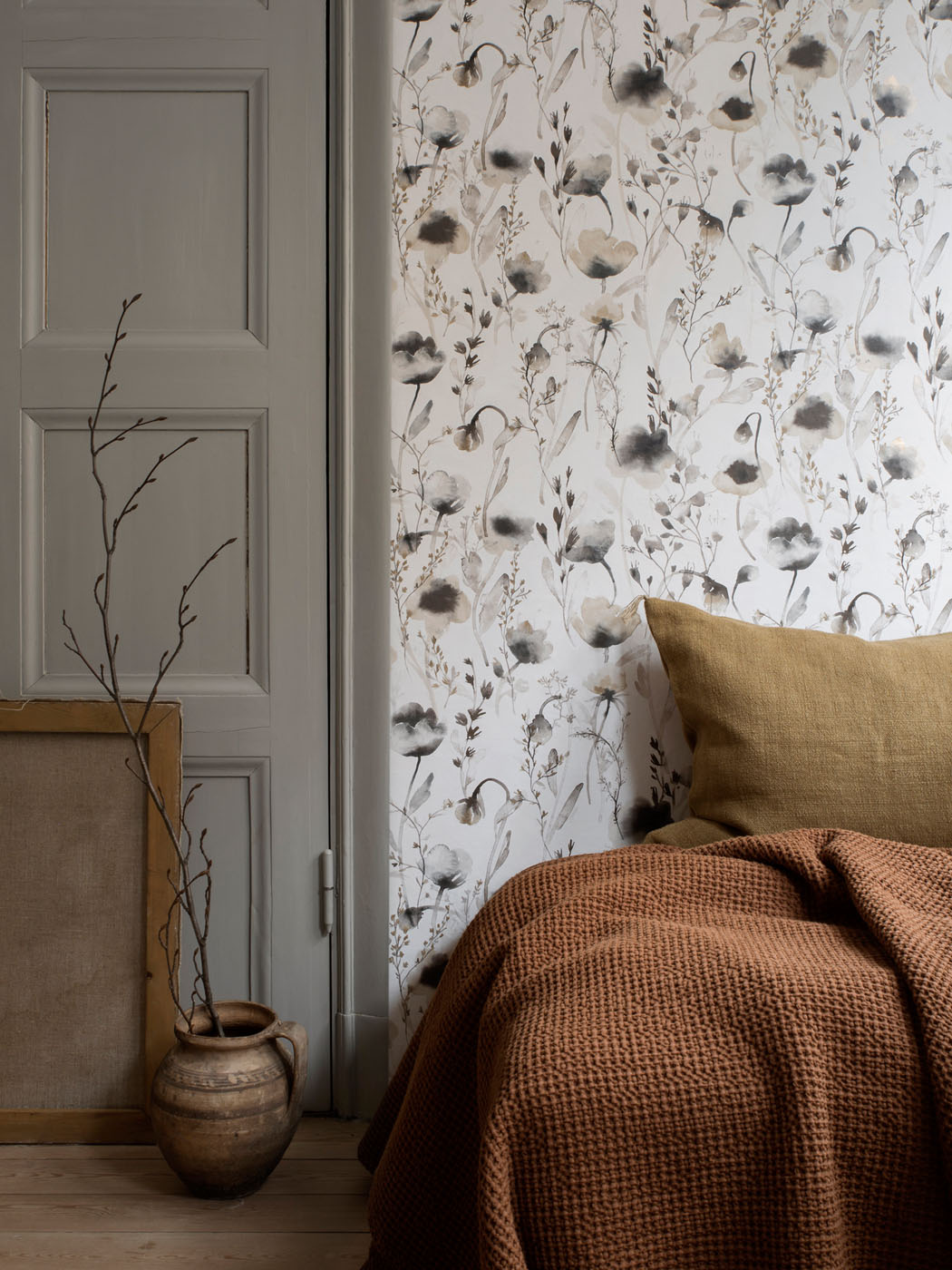 Culorile pastelate, liniștitoare, macii încântători și rămurelele delicate vă vor da impresia de lejeritate, de plutire în aer. Lo conferă pereților un aspect vibrant și modern.