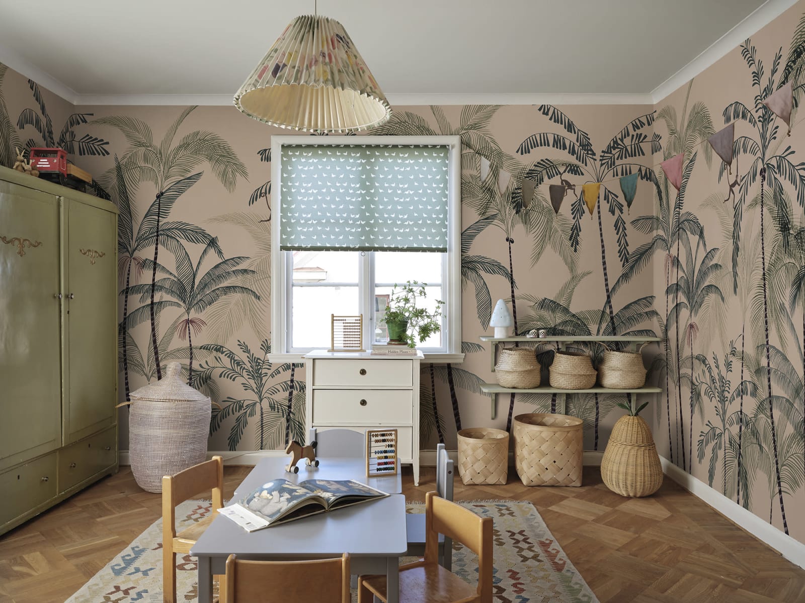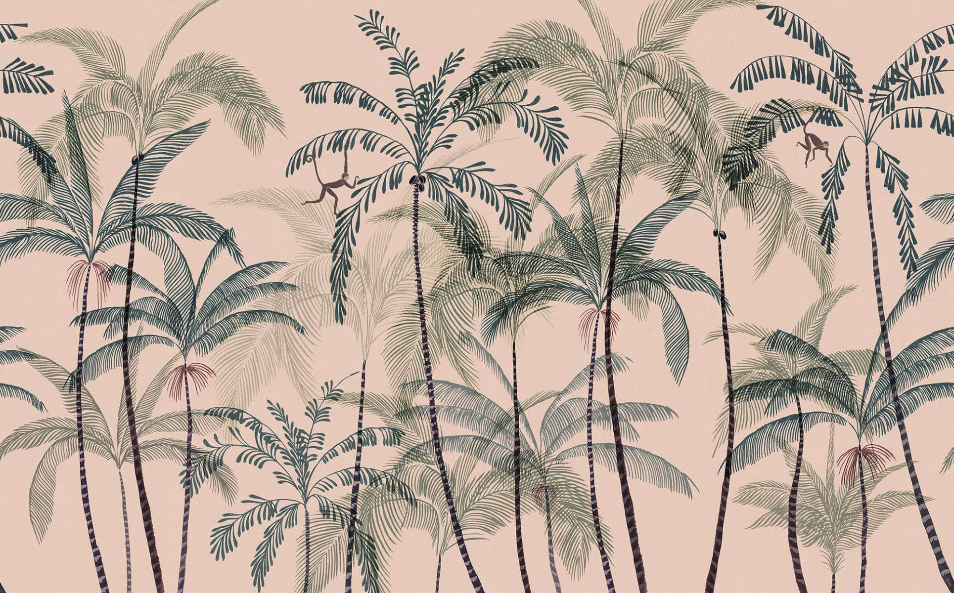 Transformă-ți spațiul cu acest tapet vibrant, cu motive tropicale. Fundalul roz pal completează perfect frunzișul verde luxuriant. Ideal pentru un decor rafinat și plin de personalitate. Creează un ambient relaxant și primitor!