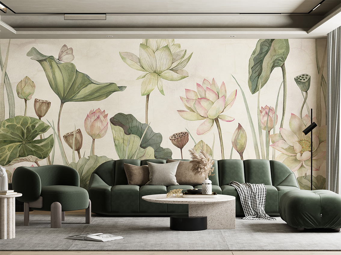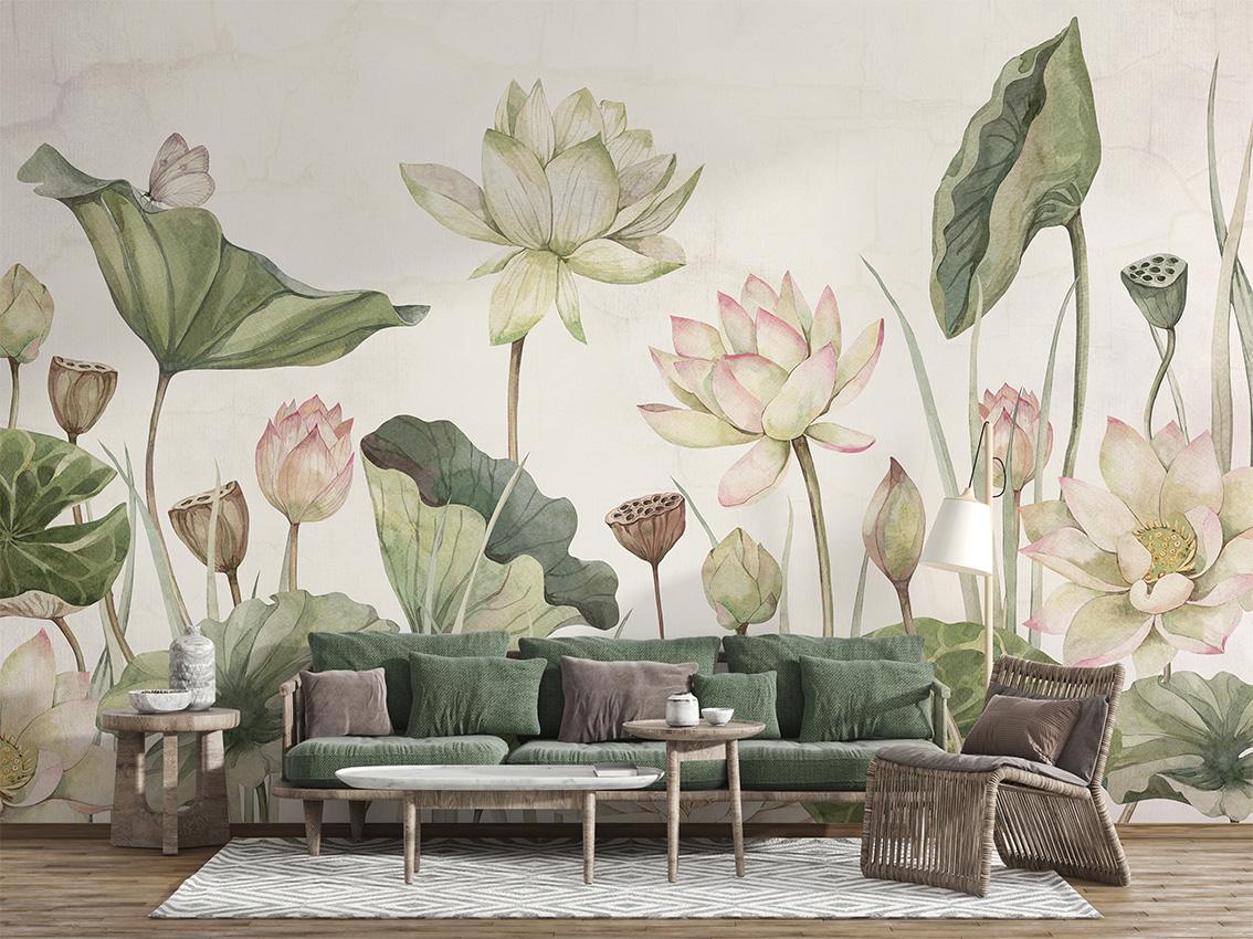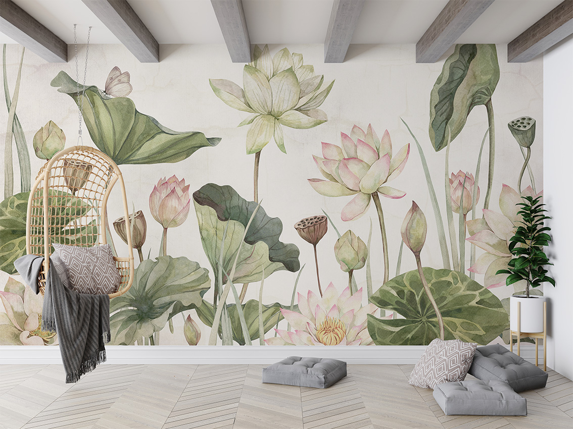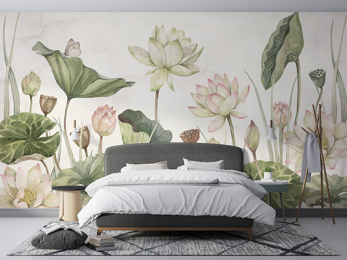 Transformă-ți casa într-un sanctuar al liniștii cu acest tapet floral. Design delicat cu nuferi și detalii picturale. Ideal pentru living sau dormitor. Creează un ambient relaxant și sofisticat!