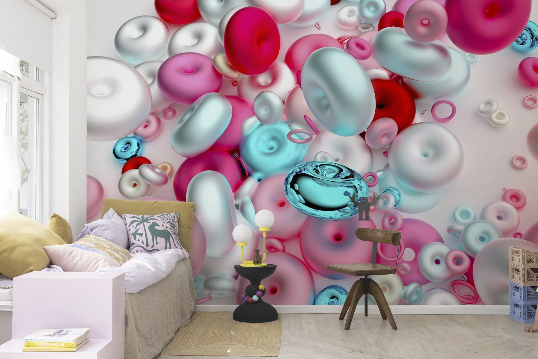 Căutați o modalitate de a adăuga ceva entuziasm pereților dvs.? Tapetul Lucky Charms prezintă o randare 3D uimitoare de artă abstractă cu un amestec suprarealist de bomboane dulci haotice și gogoși, creând un afișaj unic și atrăgător.