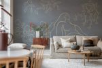 Fototapetul personalizat World Map, Blue, de la Rebel Walls, este o altă reprezentare estetică a hărții mapamondului, de această dată