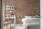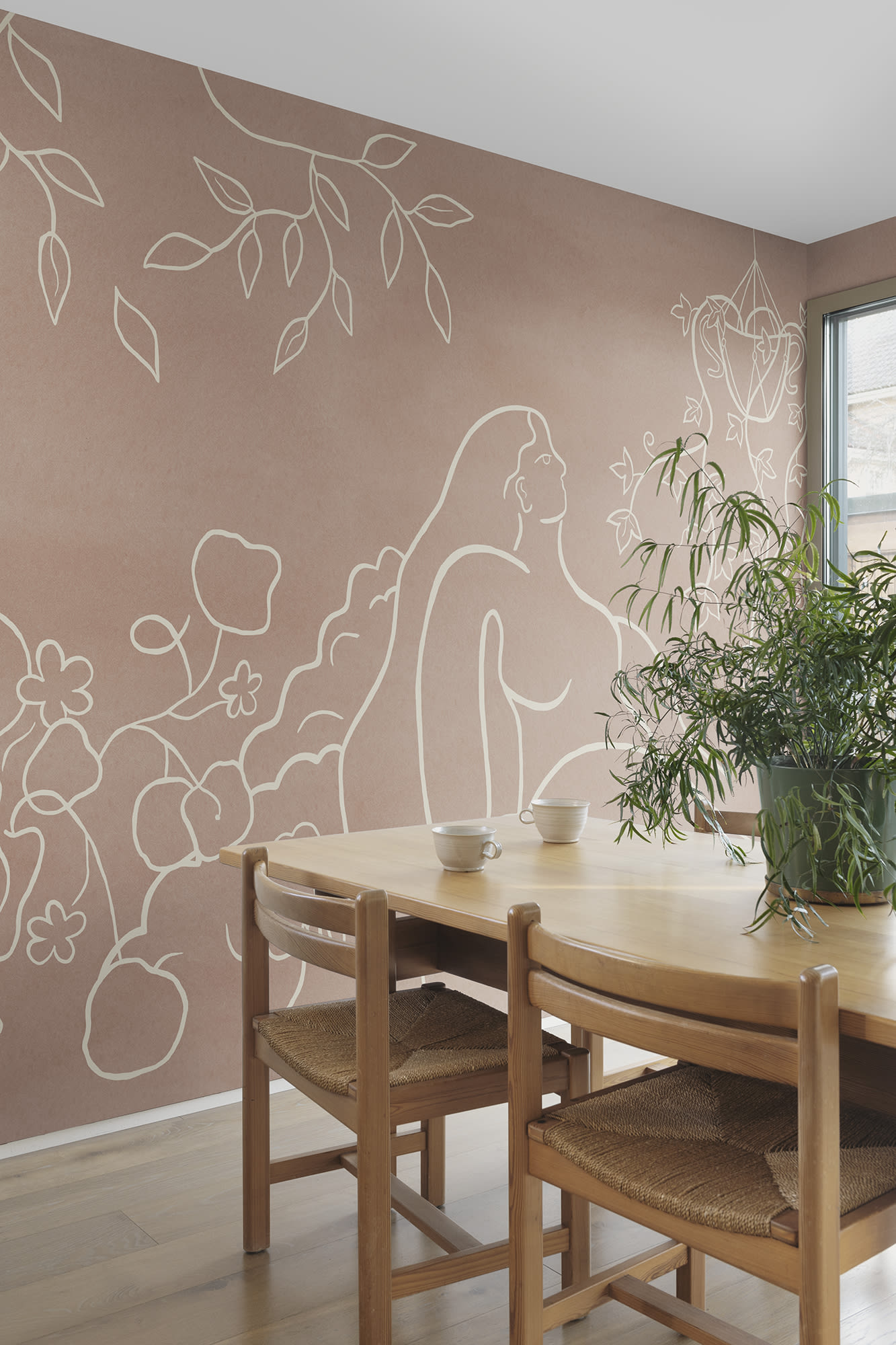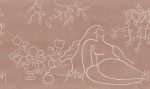 Descoperiți motivele pașnice ale tapetului Lush Lines în culoarea ruginie. Prezentând o femeie senină înconjurată de liane cu frunze și vaze decorative, acest design aduce un sentiment de eleganță rafinată. Perfect pentru a crea un spațiu cald și primitor, care este în același timp minimalist și sofisticat.