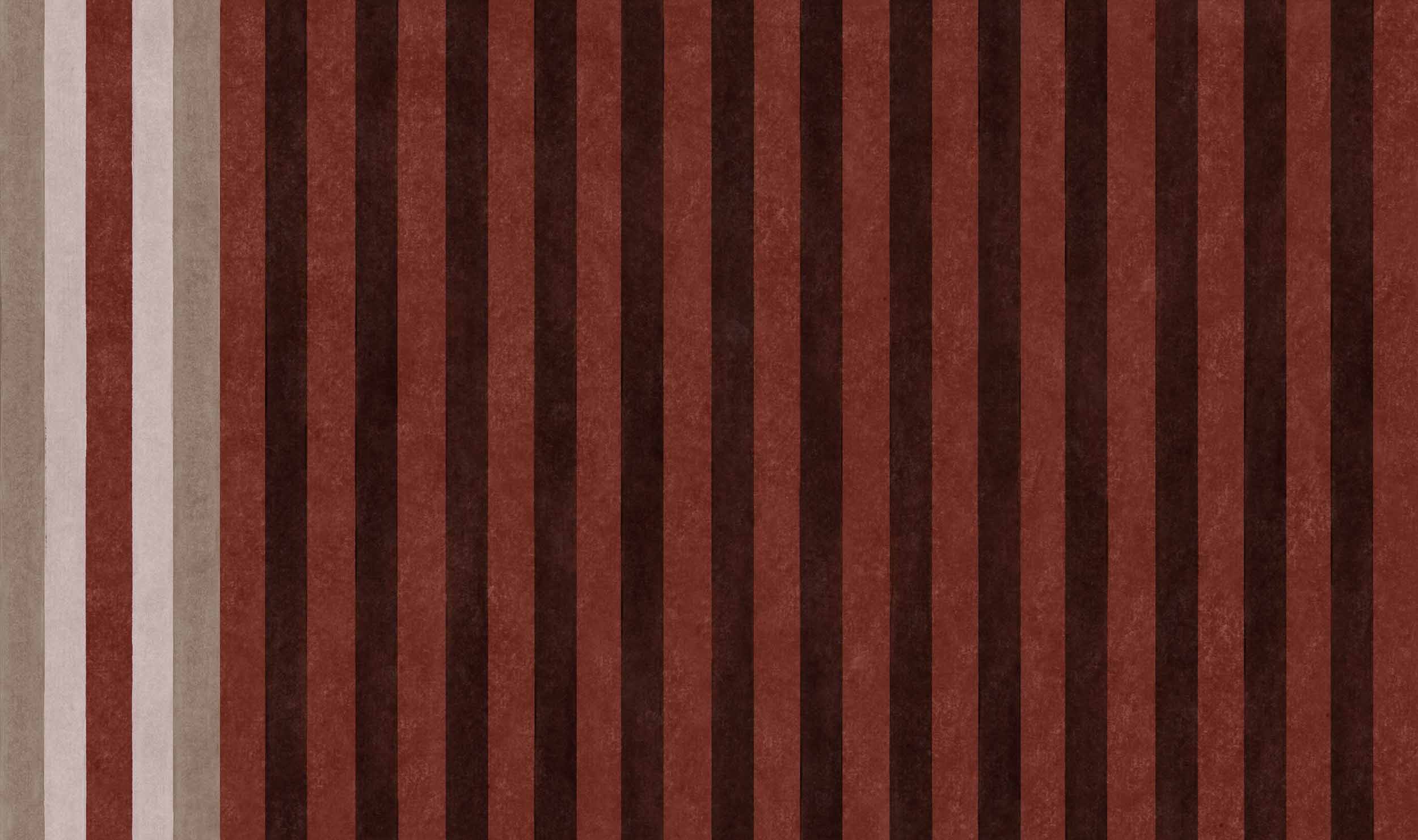 Luz y Sombra, Rosaceo, din colecția Palacio de Cristal, este un tapet cu dungi late, în tonuri de roșu/vin. Gardul de fier proiectat pe sol prin lumini și umbre.