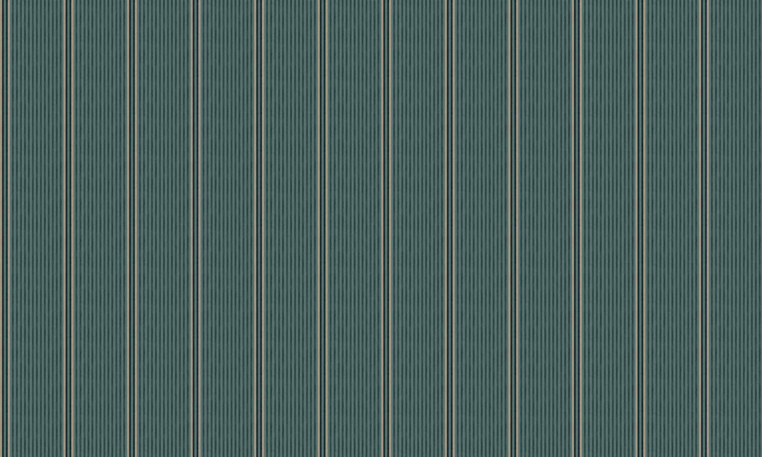 Luz y Sombra, Sage, din colecția Palacio de Cristal, este un tapet cu dungi late, în tonuri de verde. Gardul de fier proiectat pe sol prin lumini și umbre.