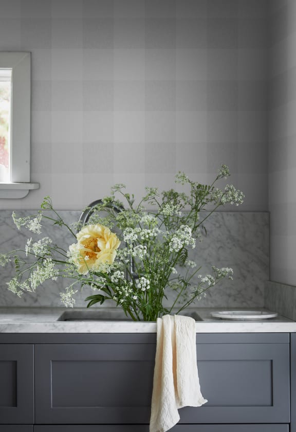 Sanna light blue este un tapet decorat cu flori de mazăre dulce care plutesc grațios pe deasupra peretelui. Floarea a