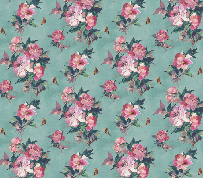 Madama Butterfly, Teal Green Luxury Floral, 1838 Wallcoverings, 5.3mp / rola