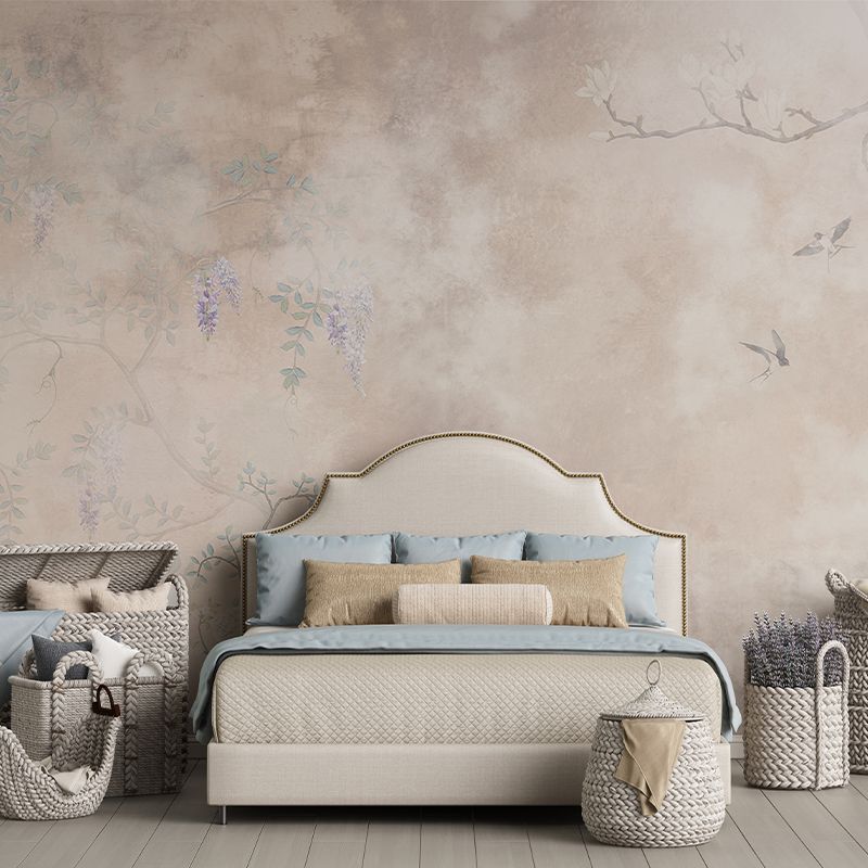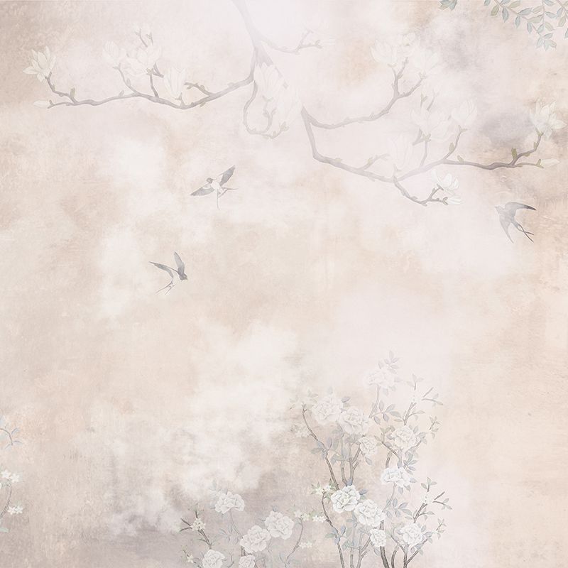 Transformă-ți casa într-o oază de liniște cu acest tapet fin. Designul său subtil cu magnolii și primule aduce o notă elegantă și relaxantă oricărui interior.