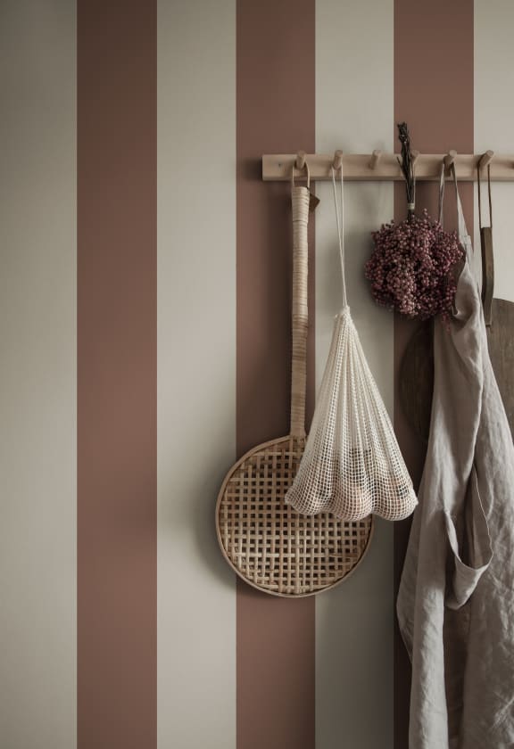 Acest tapet clasic, cu dungi late, se potrivește perfect într-o încăpere modernă, precum și într-o amenajare mai tradițională.