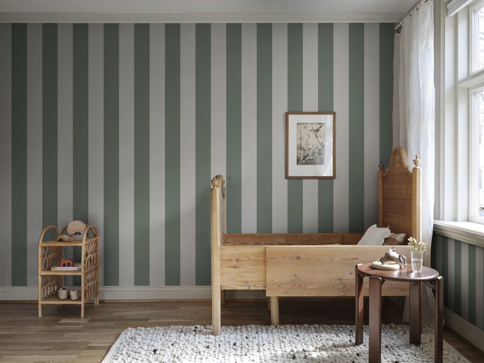Clasicul nostru cu dungi orizontale se potriveștela fel de bine în casele moderne precum și în contexte mai tradiționale. Magnus Forest Green are dungi în verde și bej.