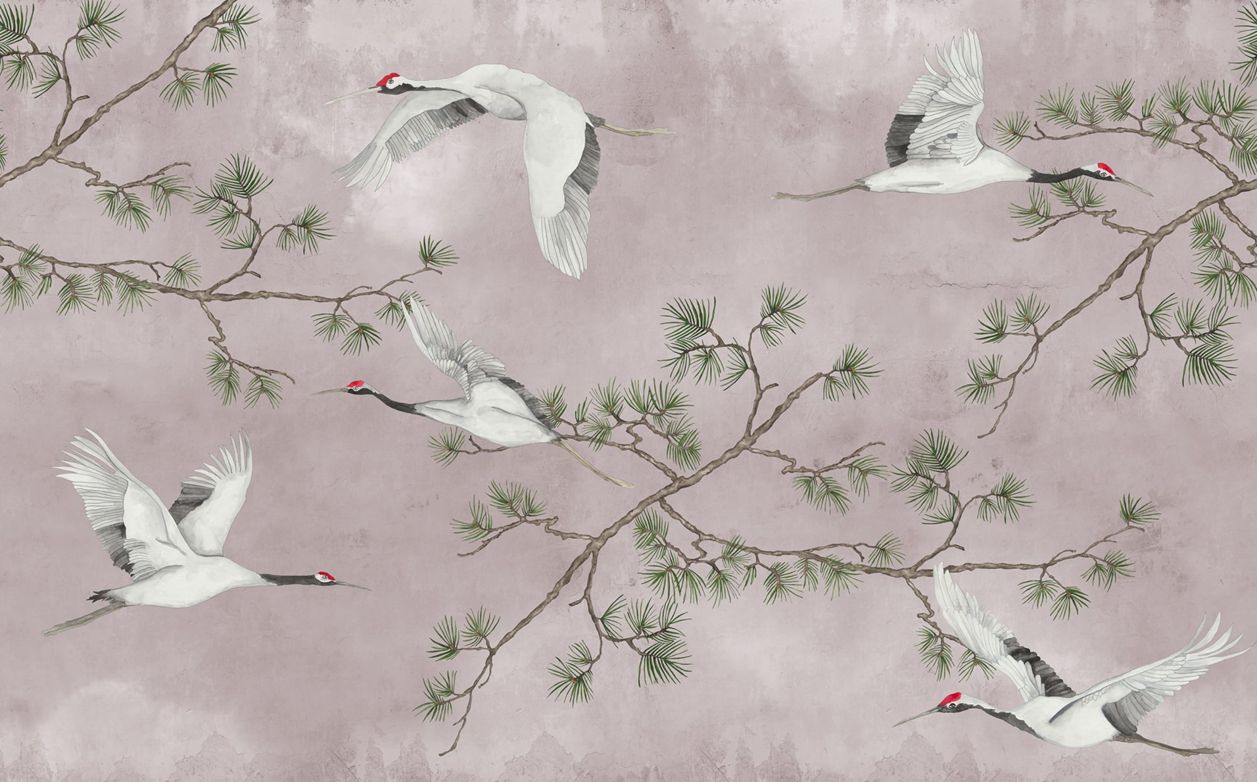 Majestic Cranes, Pink, Rebel Walls
