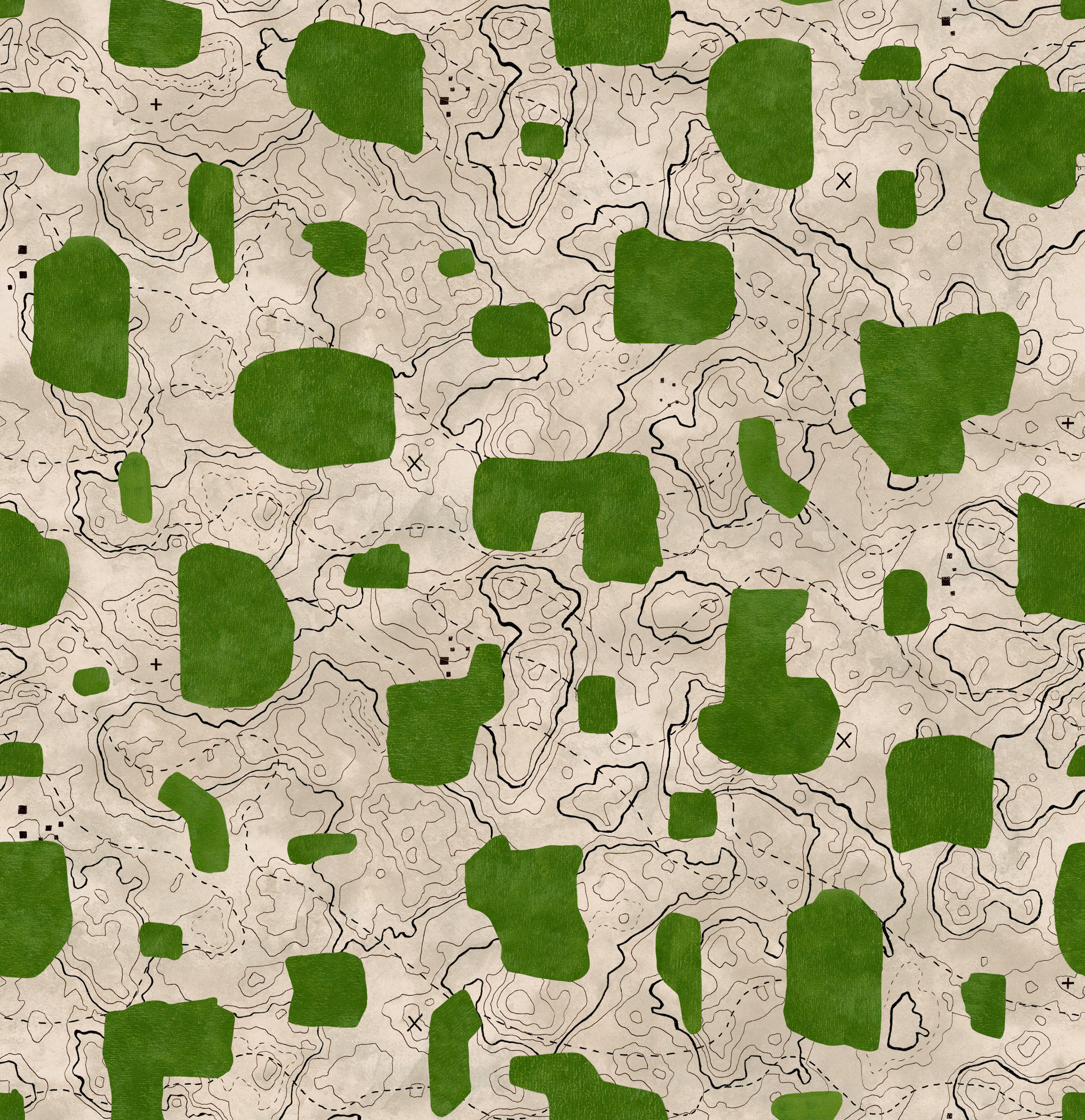 Map Xylography, Green, din colecția Playful Layers. Modele compatibile de repetiție: Topografia terenului + Gravura în lemn.