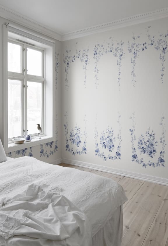 Marieberg este o operă de artă murală care arată ca un decor de porțelan frumos pictat manual. Frunzișul formează un decor gustavian tipic pe perete. Modelul este numit după fabrica de porțelan Marieberg.