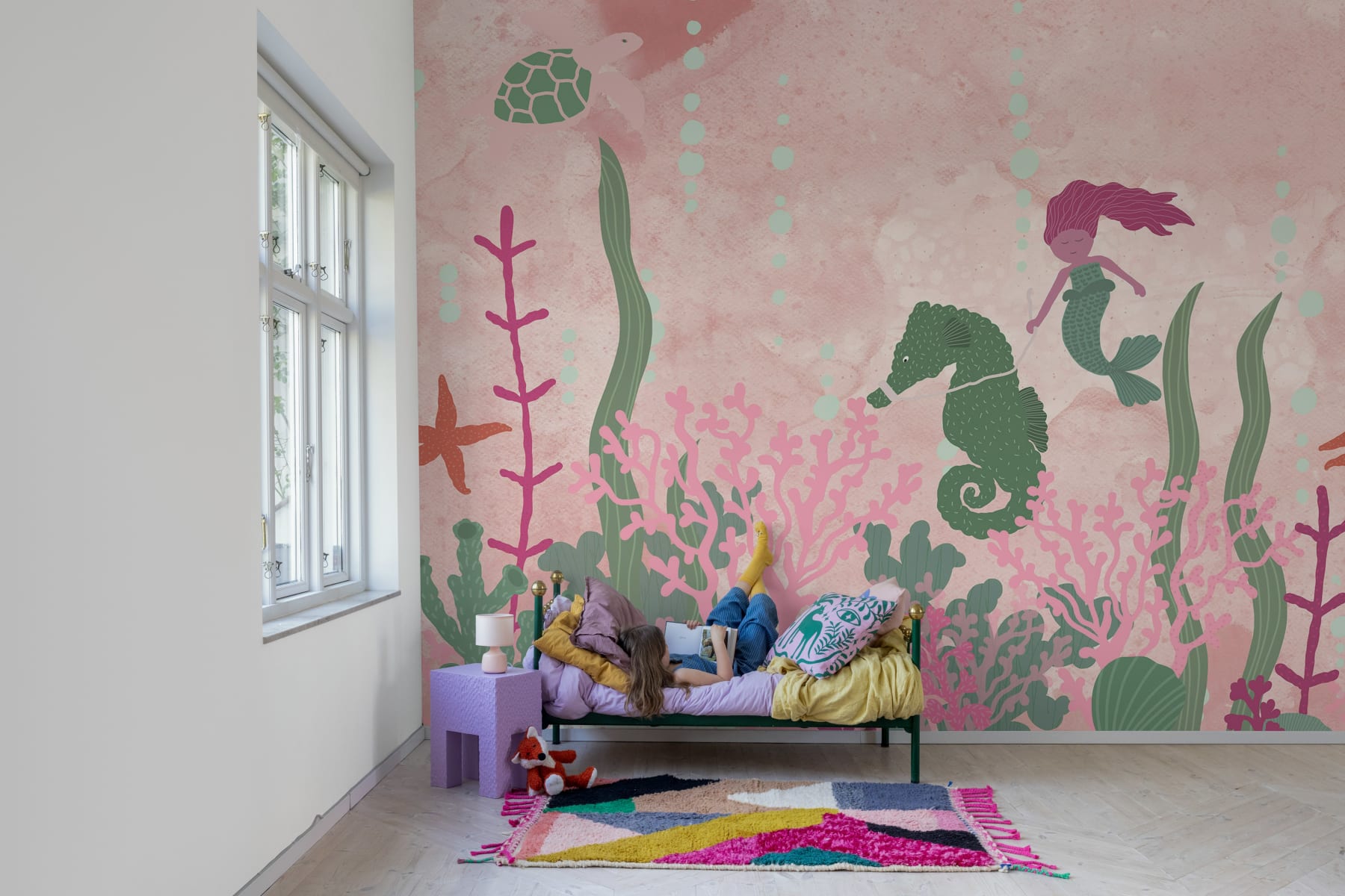 Creează un paradis subacvatic fantezist cu tapetul „Mermaid World, Pink”. Acest design fermecător prezintă sirene încântătoare, căluți de mare și recifuri de corali, toate pe un fundal roz delicat. Ideal pentru camere de copii, săli de joacă sau orice spațiu unde imaginația prinde viață, acest tapet adaugă o notă de magie și minunăție. Fabricat din materiale premium, asigură durabilitate și întreținere ușoară. Lasă visele copilului tău să navigheze într-o mare roz, plină de aventuri marine încântătoare și prieteni jucăuși ai sirenelor.