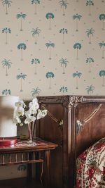 Ca mici ornamente, palmierii stilizați împodobesc cu mândrie acest tapet decorativ. Un model cu un aer jucăuș și exclusivist în același timp. Milo, Misty Blue evidențiază un fundal bej cald, evidențiat cu nuanțe reci de albastru și bej delicat.
