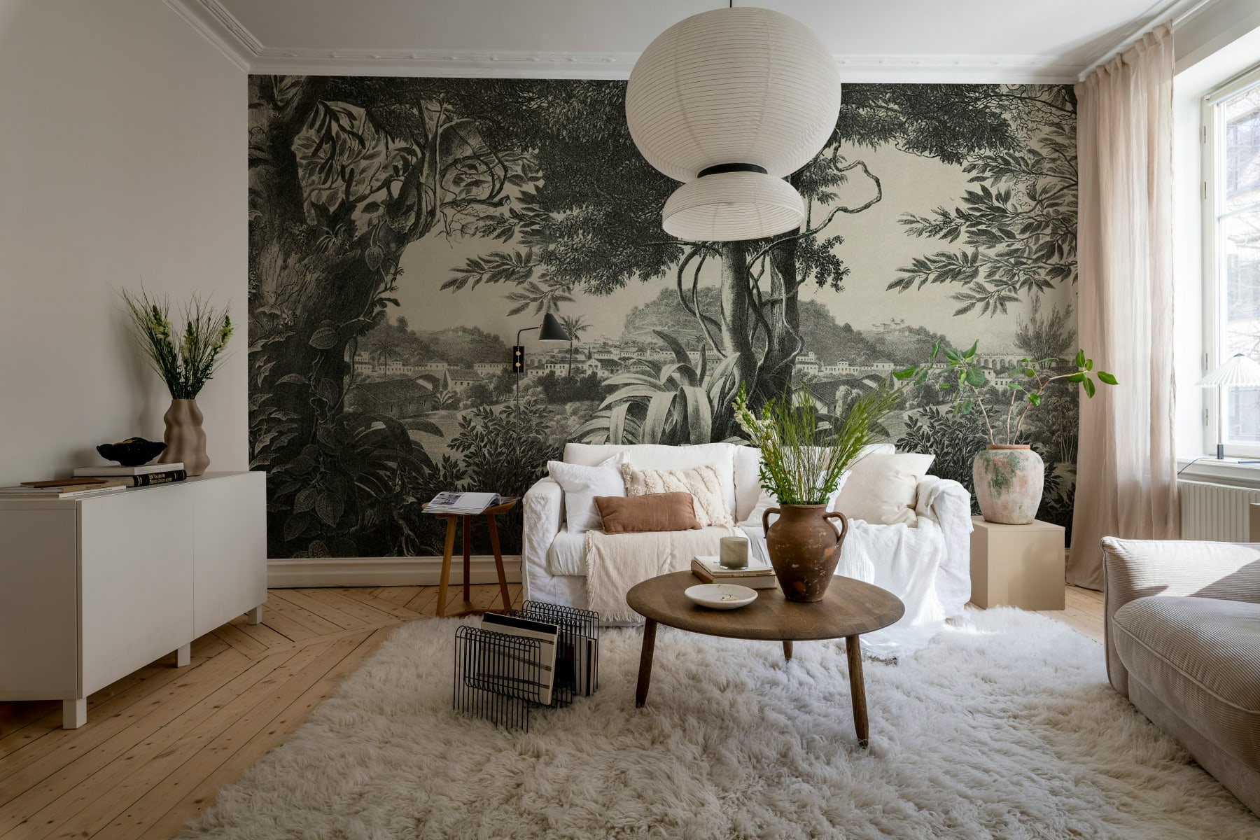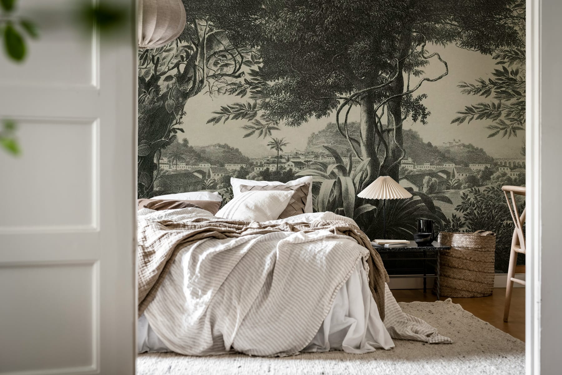 Mirage Repeatable, Vintage te cufundă în frumusețea atemporală a unei păduri străvechi, capturată într-un monocrom uimitor. Acest tapet aduce măreția peisajelor de odinioară în casa ta, cu redarea detaliată a copacilor maiestuoși și a sălbăticiei. Stilul vintage al designului conferă o eleganță clasică, făcându-l o alegere perfectă pentru spațiile care doresc să îmbine traiul modern cu farmecul istoric. Ideal pentru pereți de accent, biblioteci sau birouri, acest model oferă un fundal profund și reflexiv care îmbogățește orice cameră cu adâncimea și istoria sa.