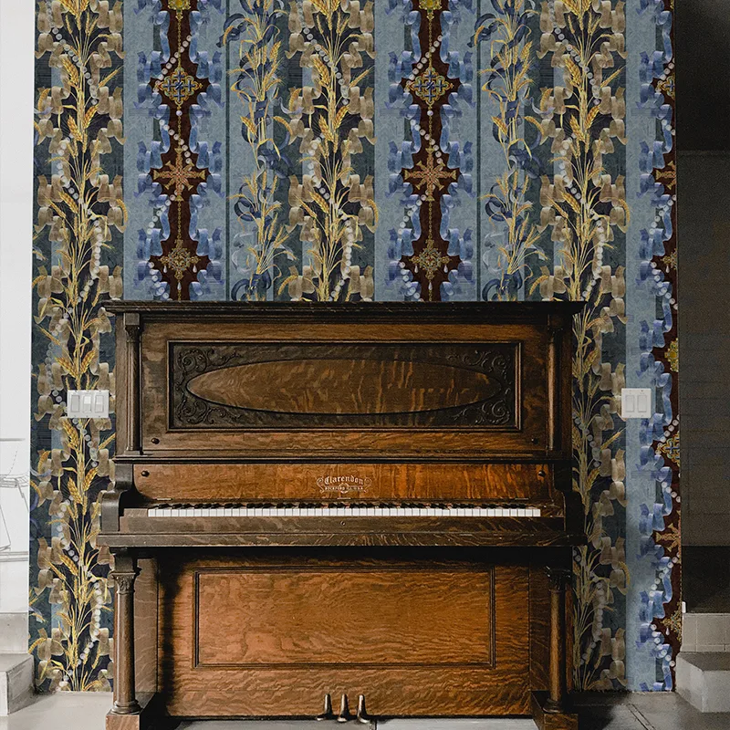 Tapetul Missy’s Gardens Bleu face parte din colecția Stella Maris, o serie de printuri inspirate de cea mai frumoasă regină, Maria de Romania. Fiecare model spune câte o poveste aflată la granița dintre tradițional și artă, îmbogățită de designerii VLAdiLA cu simboluri ale monarhiei, alături de ornamente ce amintesc de bijuteriile, țesăturile și broderiile regale. Stella Maris e o colecție metaforă, iar fiecare model a fost atent creat pentru a satisface nevoia de spectacol a oamenilor, dorința de a accede către un univers personal al impresionantului, al rafinamentului și al bunului gust.