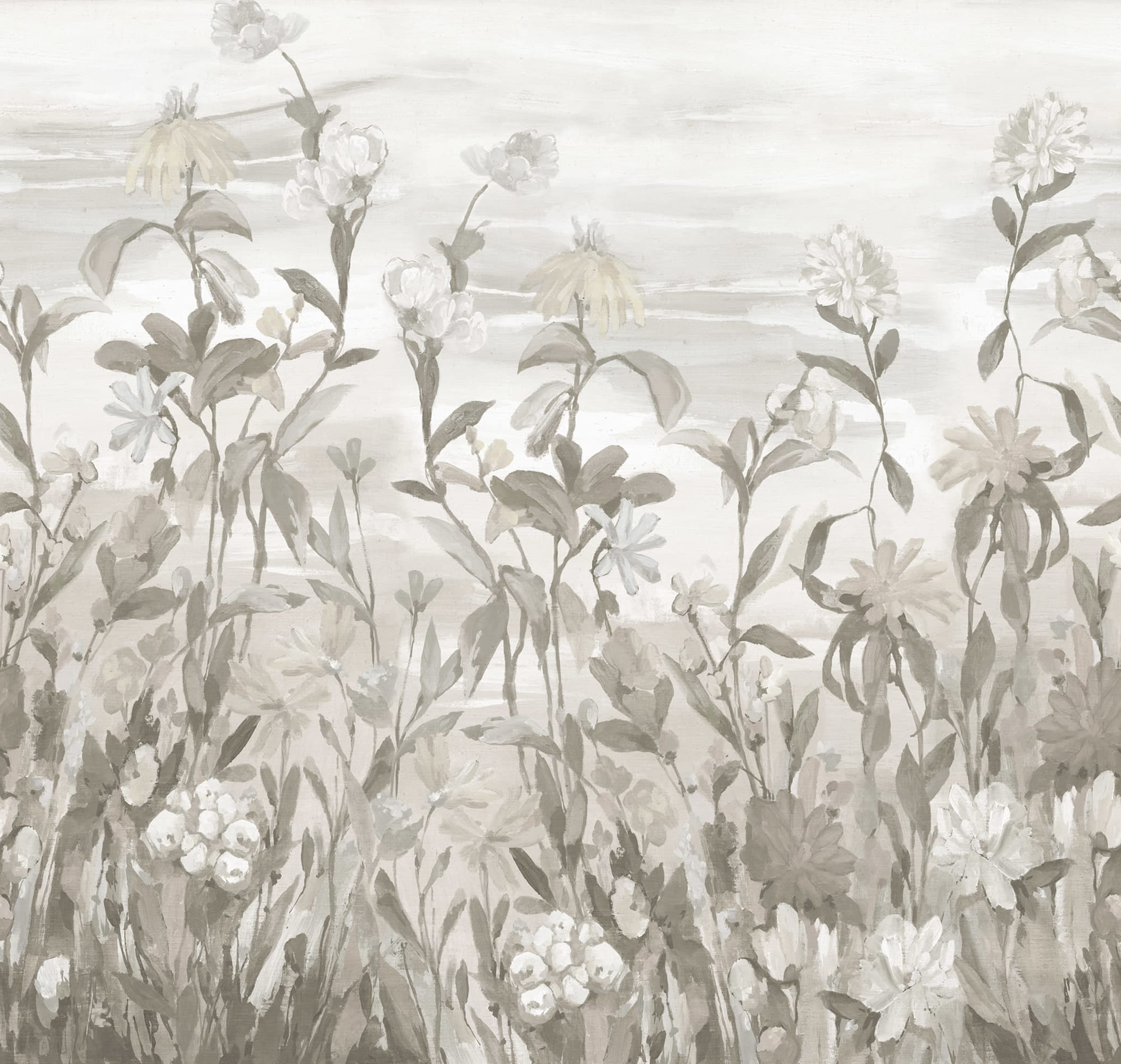 Tapetul Misty Garden este o versiune măreață a florilor de câmp care se întind cu nerăbdare spre cer. Modelul este pictat manual în ulei pe pânză și are o textură minunată și un farmec de casă de la țară. Varianta de culoare Sand este subtilă, în nuanțe frumoase de bej și gri deschis.
