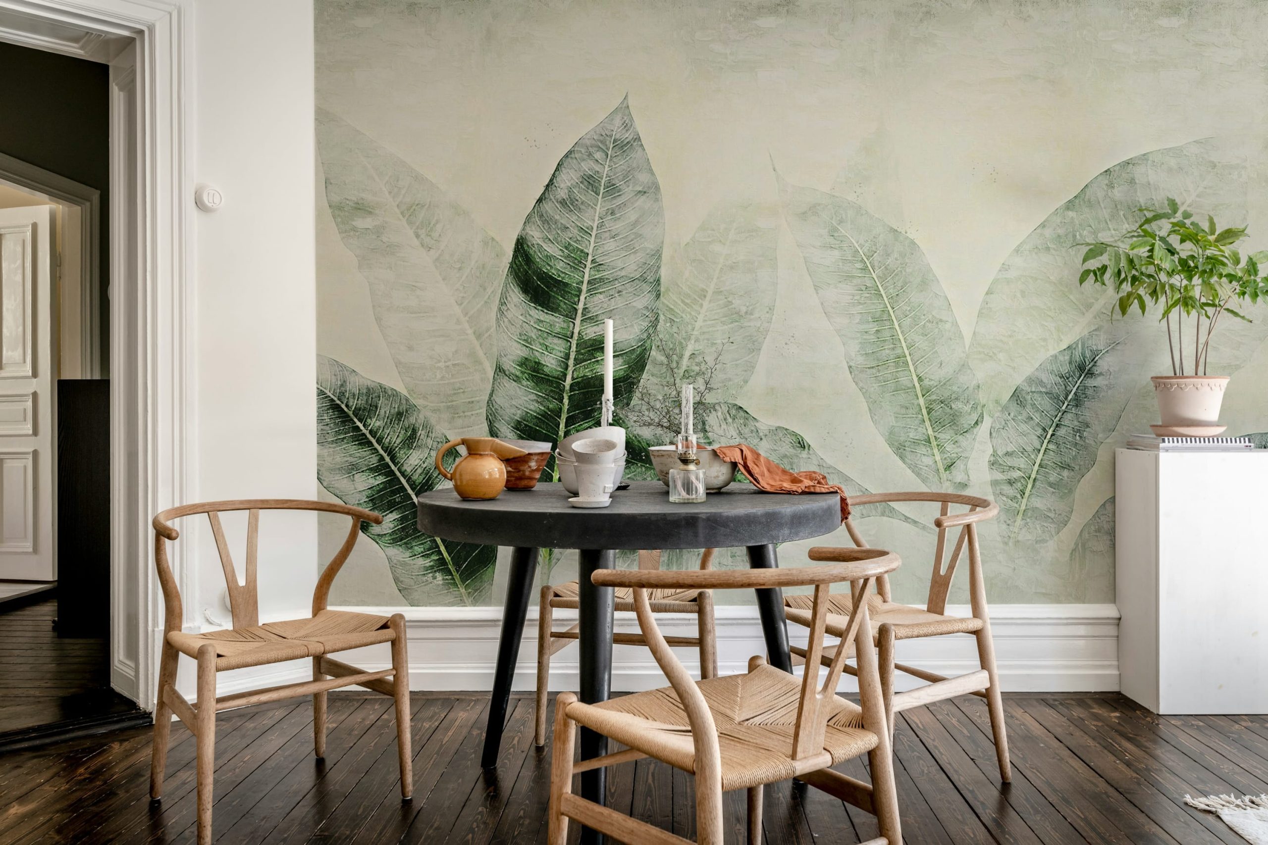 Home Tapet și Fototapet Misty Leafs, Green, Rebel Walls