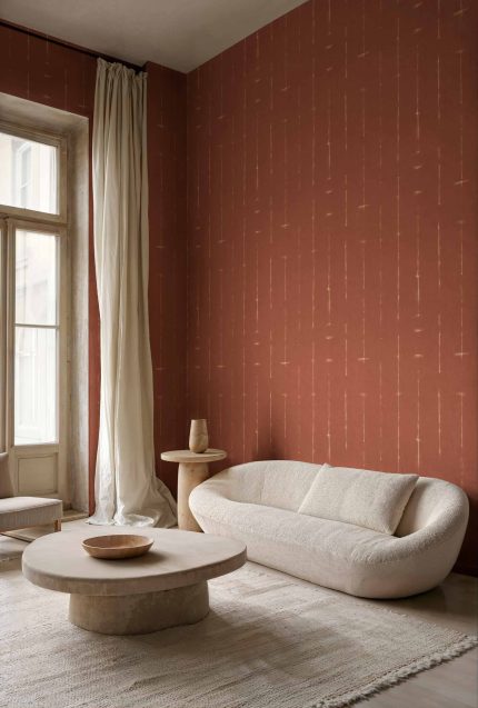 Tapetul Lin Corail III de la Coordonné este un design texturat în tonuri de roșu/vin din colecția Palette. Nuanțe vibrante