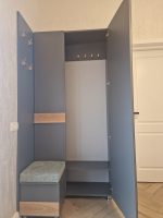 Mobilierul de hol la comandă este preferat tocmai pentru că permite combinarea elementelor esențiale — dulap, cuier, pantofar și bancuță — într-o soluție compactă, adaptată perfect spațiilor reduse. Pretul afisat este pentru modelul prezentat.