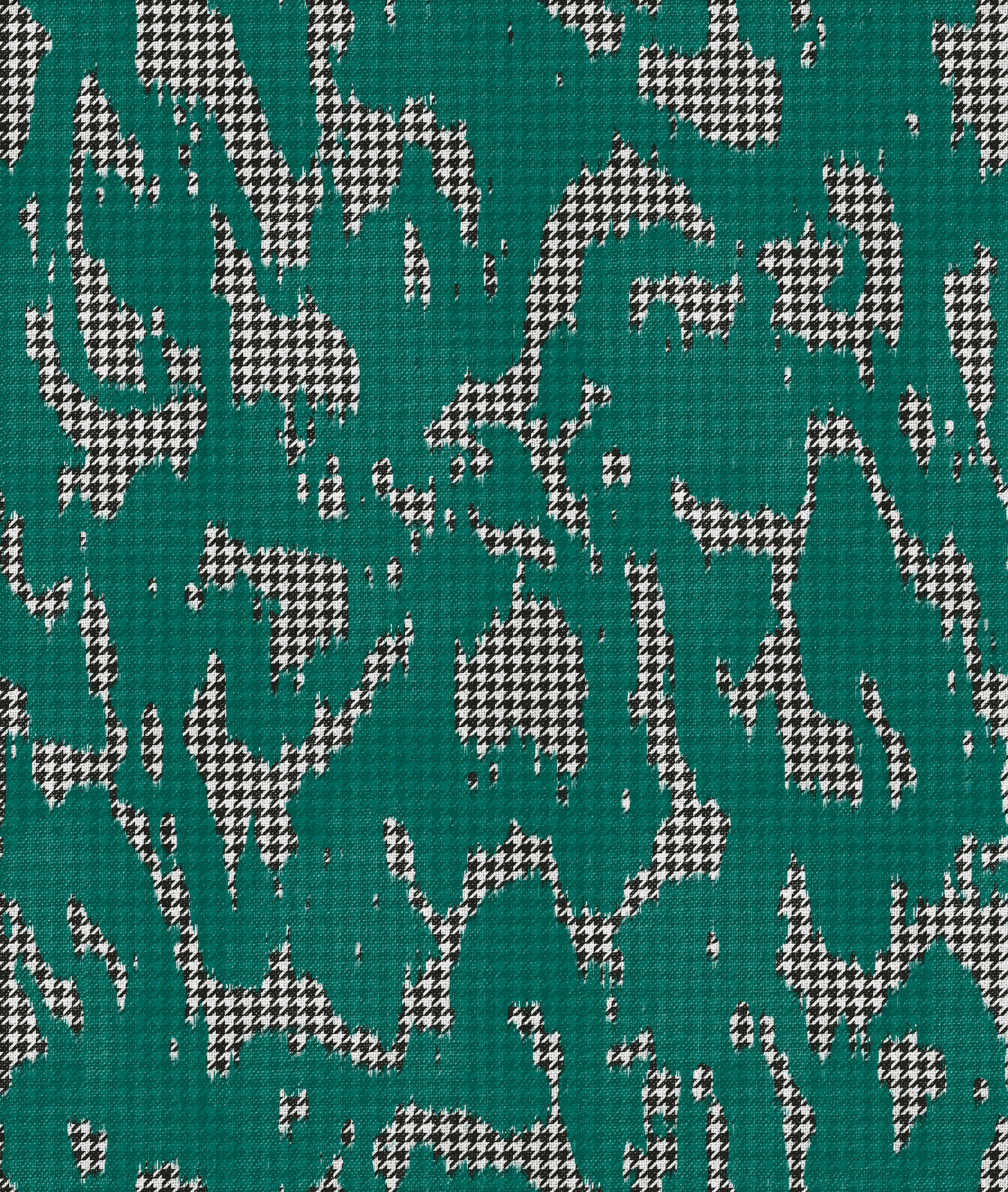 Moire Screen, Green, din colecția Playful Layers. O combinație echilibrată de textile masculine și feminine: Croi pepit + țesătură Moiré rococo.