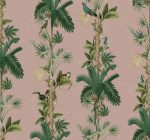 Un tapet creativ în dungi, cu o senzație tropicală, evidențiază verdeața bogată, maimuțele zburătoare și tucanii cu cicuri mari. Maimuțele vor să se joace, dar tucanul are planuri complet diferite pentru ziua respectivă.
