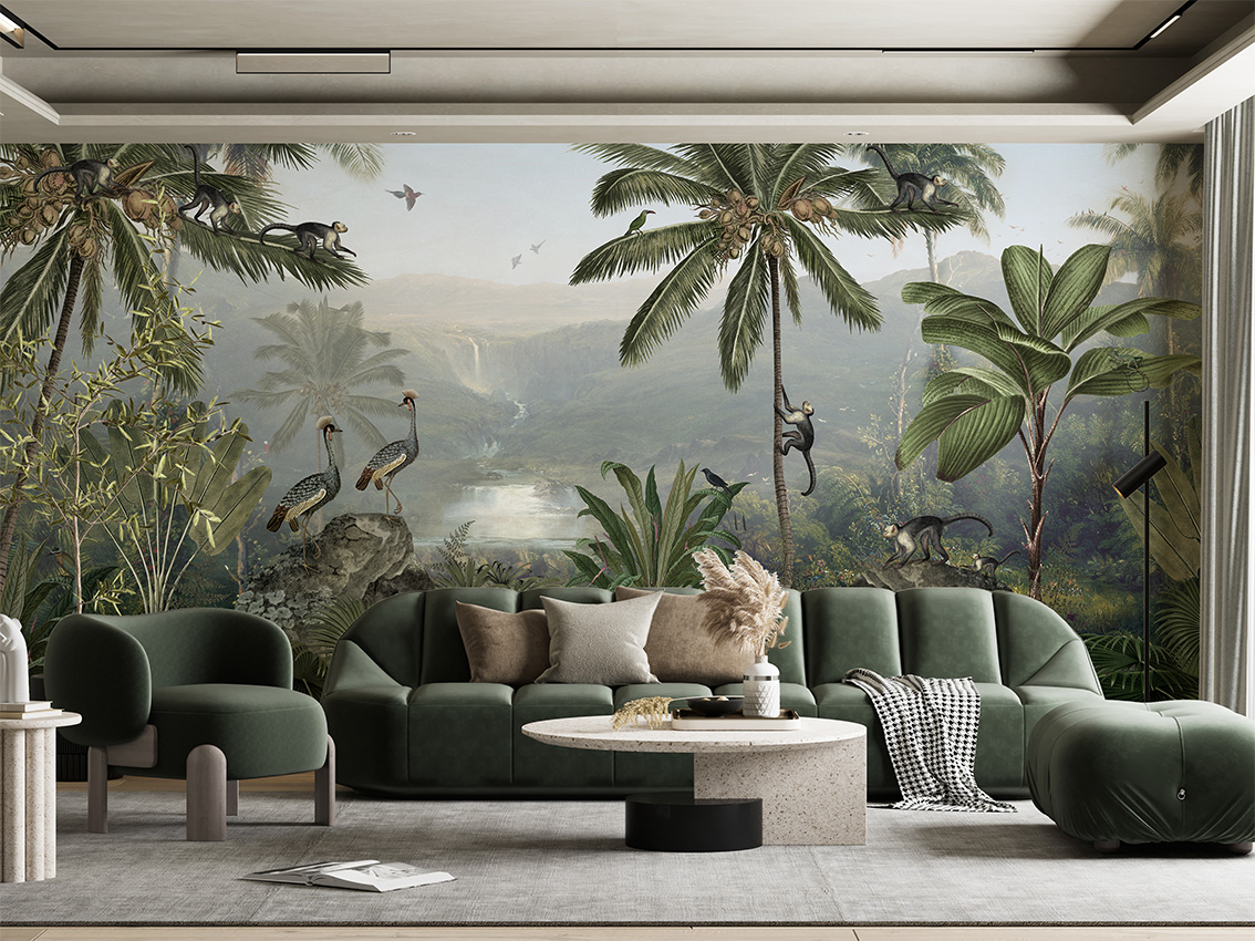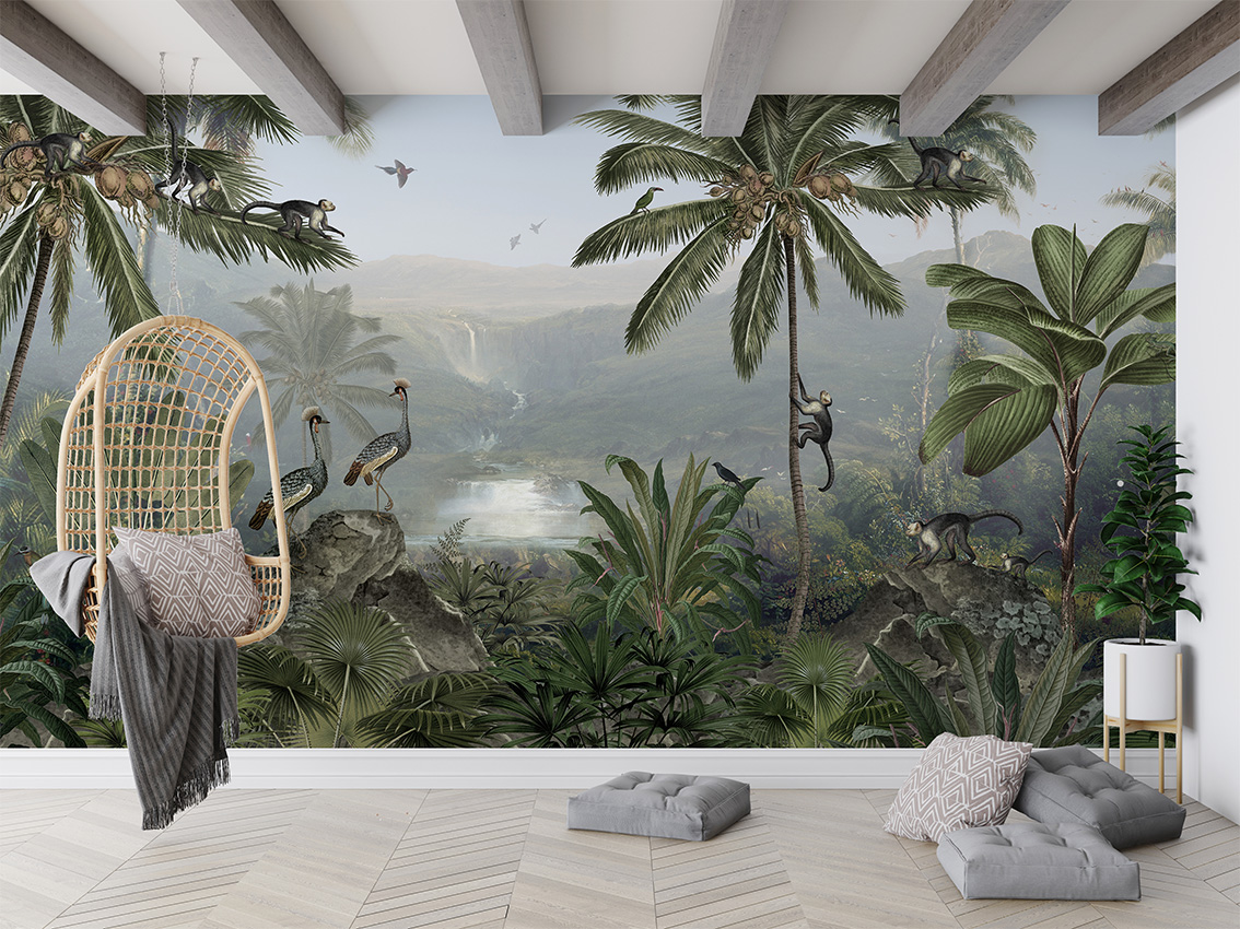 Evadează într-o junglă luxuriantă cu acest tapet personalizat. Maimuțe jucăușe, cascade misterioase și vegetație bogată creează un sanctuar exotic în casa ta. Perfect pentru un decor unic și relaxant.