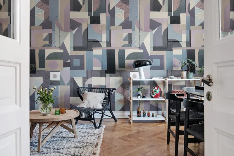 Design de fototapet din colaborarea Rebel Walls cu artistul Mic Linder. Mic experimentează cu forme și iubește culorile. „My Favorite Colors” este un model cu forme geometrice într-o varietate de culori.