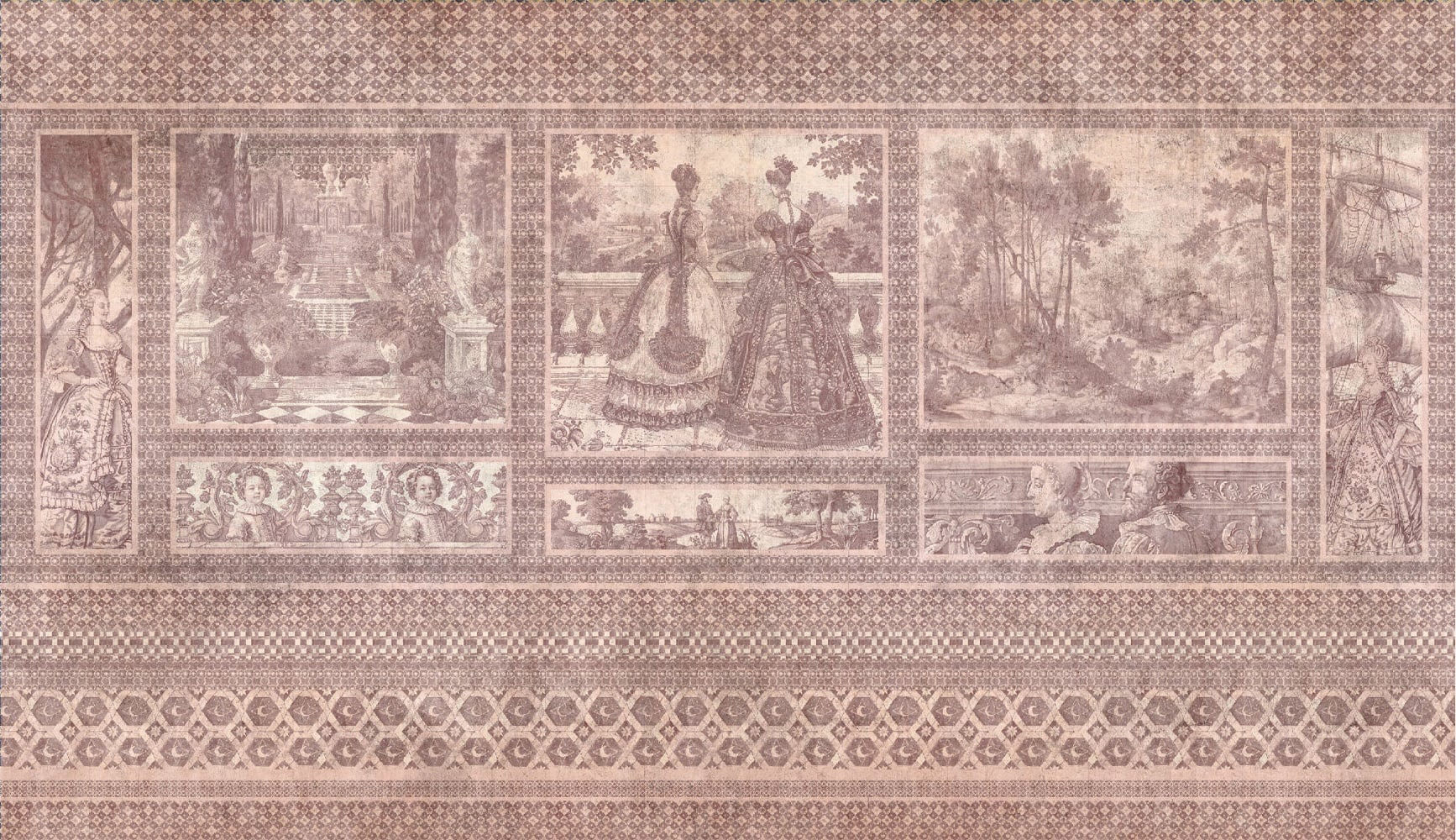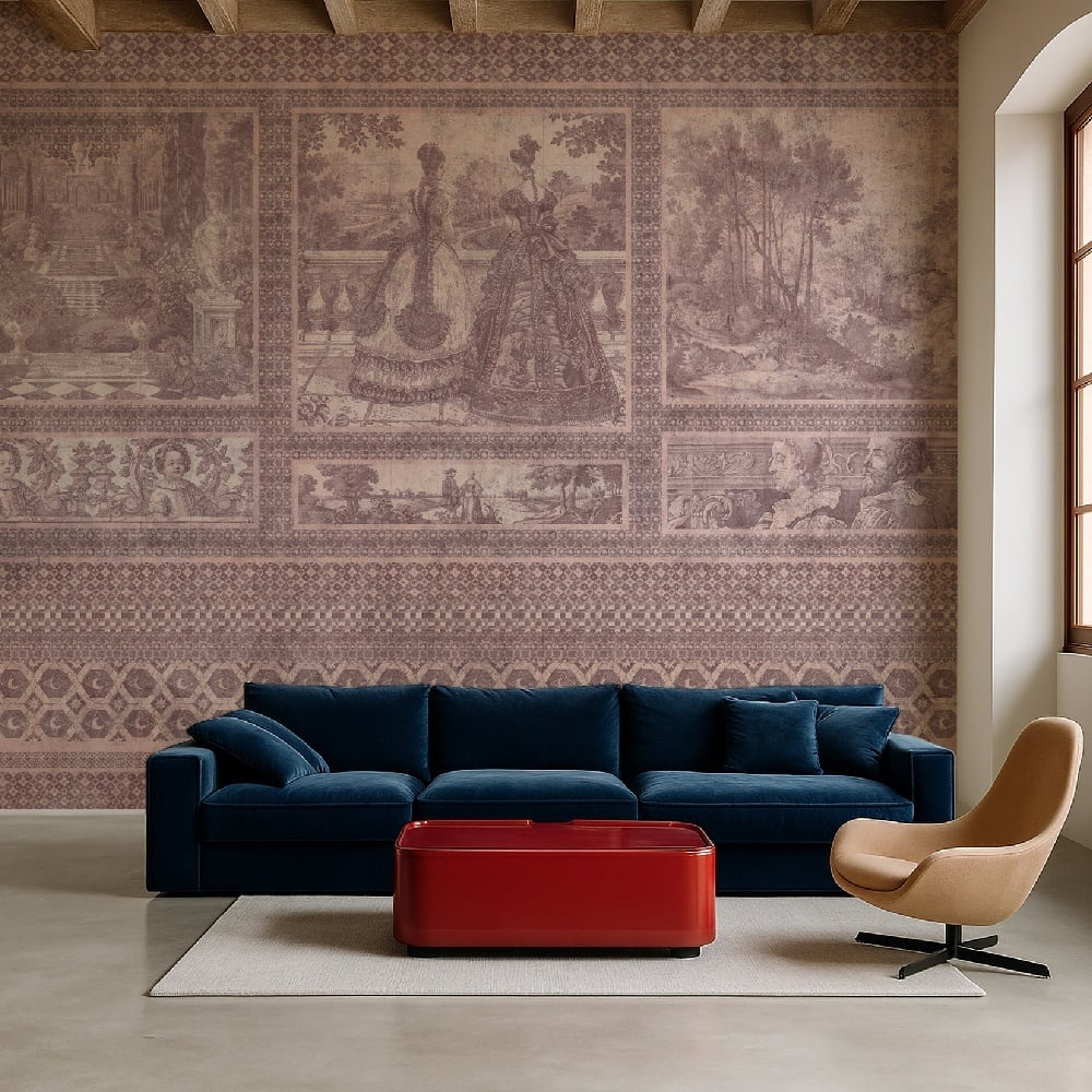 Tapetul Mythic Panorama este o frescă grandioasă a legendelor atemporale. Scene mitologice se desfășoară pe paneluri cu artă barocă. Pereții se transformă în teatre ale istoriei și imaginației.