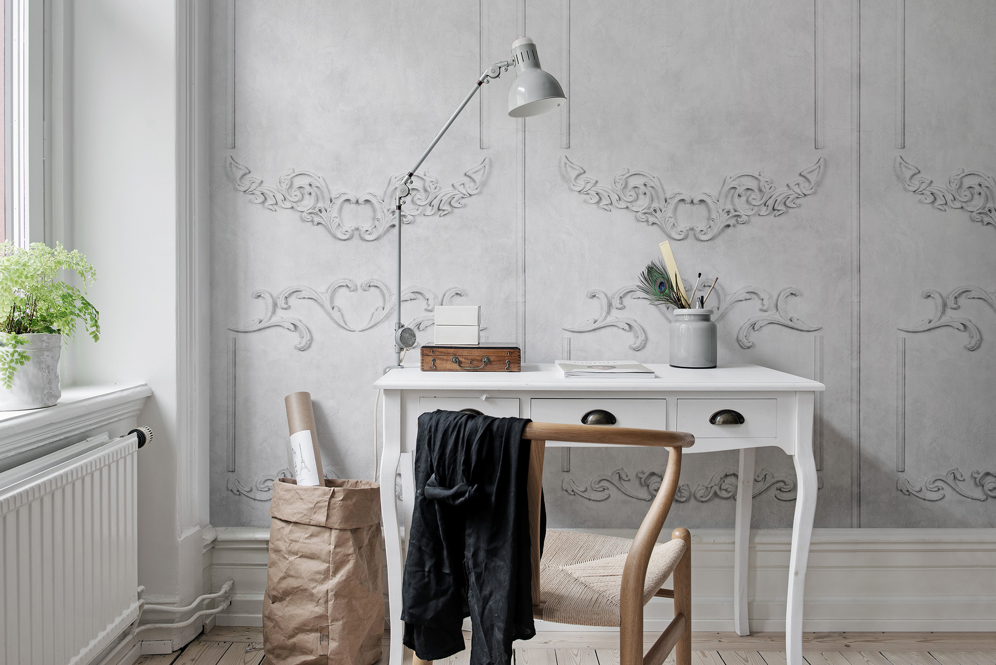 Trecând peste formele desăvârșite ale panourilor franceze, fisurile înguste din acest fototapet creează un look sofisticat. O imagine a timpului care a trecut. Timp bine petrecut, o viață trăită bine. Nu poți vedea fisurile de la depărtare, dar odată ce te apropii, ele sunt vizibile și cruciale pentru atmosfera creată de acest design.