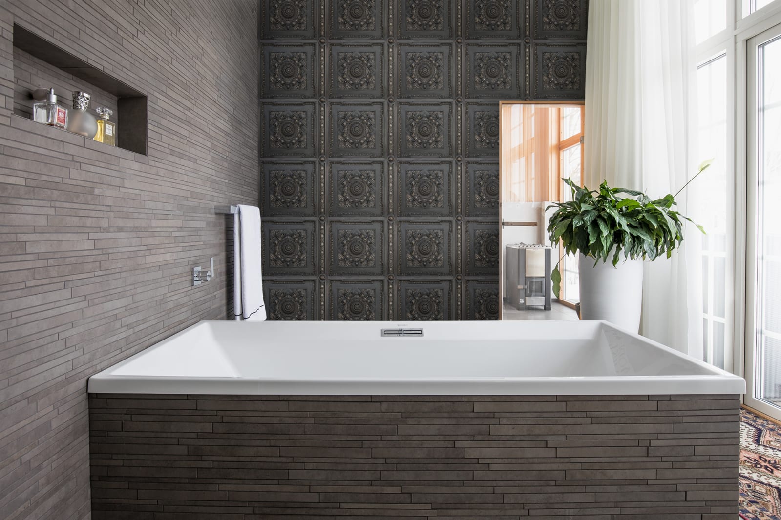 Fototapetul personalizat Dusty Rubber Stamp, de la Rebel Walls, potrivit pentru amenajări moderne, în stil vintage sau industrial, are un
