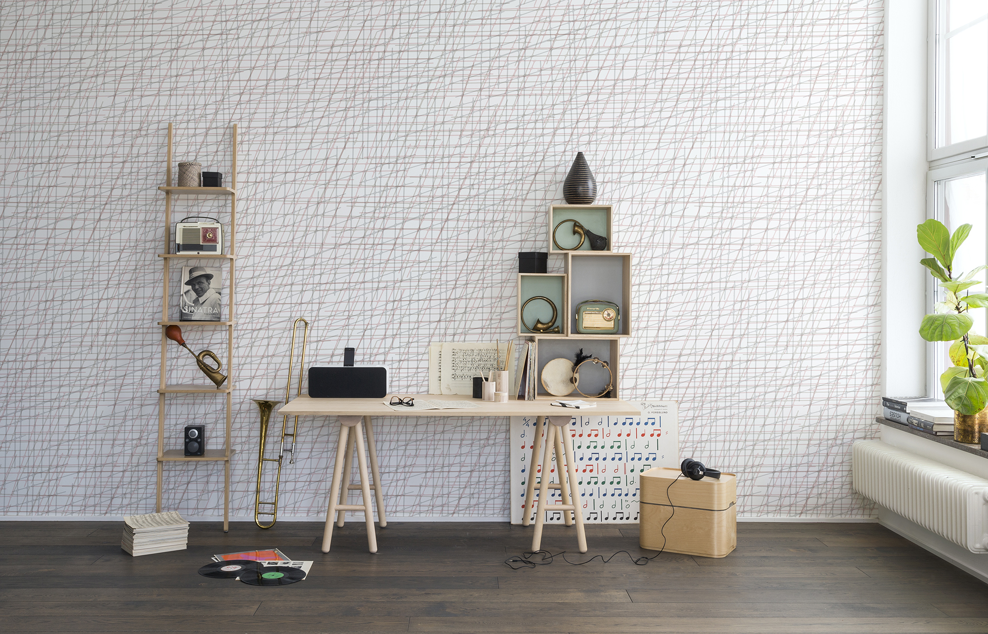 Partituri stilizate pun bazele pentru acest tapet grafic. Incitant și energetic în culoare și linie, dar fără a pierde distincția. Un model adecvat ca backscene, precum și pentru toți pereții camerei. Zone mici și mari deopotrivă. Cu un subtil apropo la perfecțiunea grafică a anilor 50 și 60.