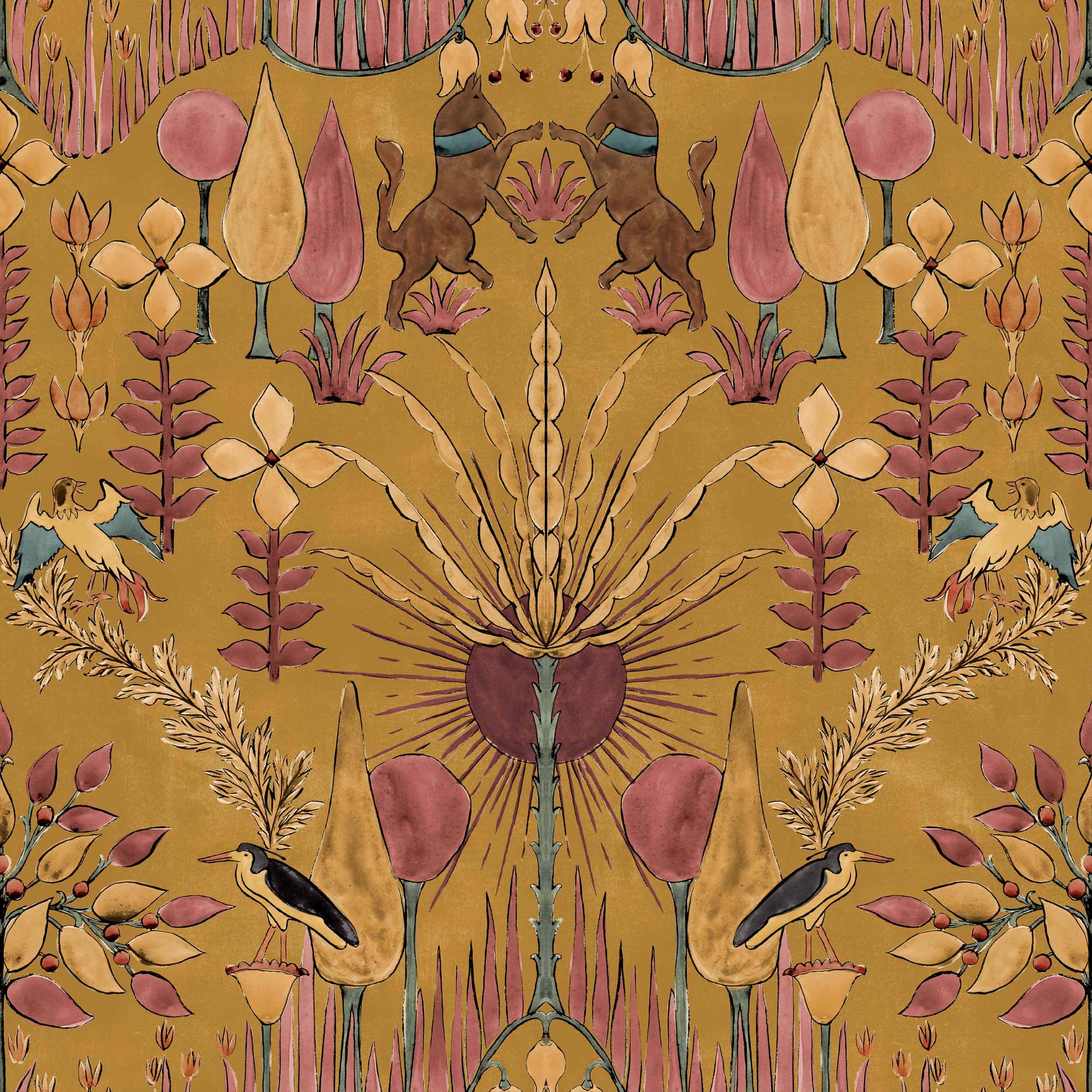 Tapetul „Oasis Villa” cu motive vegetale, face parte din colecția Berber și este inspirat de vila glamour unde Yves Saint Laurent și-a dezvoltat exotismul marocan.