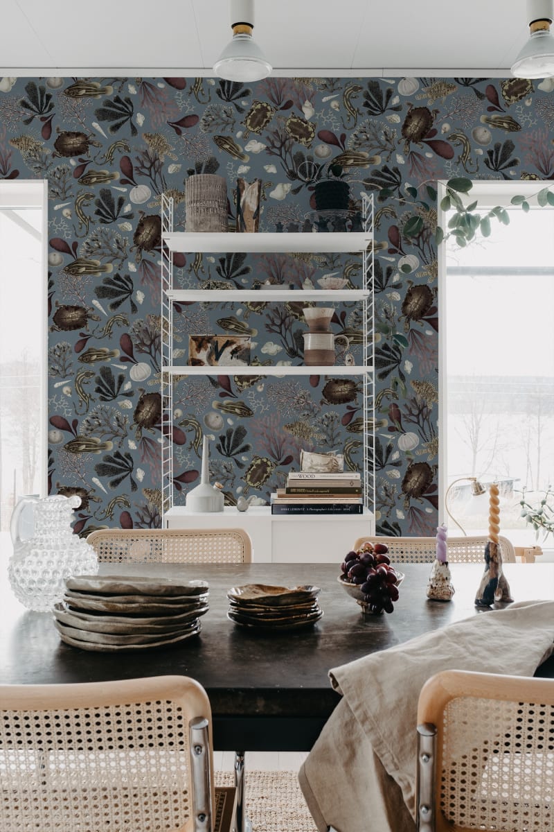 Scufundați-vă într-o lume subacvatică senină cu tapetul nostru Ocean Life, Azure. Acest design realizat în mod unic aduce o notă marină chiar în spațiul dvs. de locuit. Designul este plin de ilustrații meticulos detaliate cu țestoase, pești, plante oceanice și o multitudine de alte lucruri pe care le găsiți în adânc.