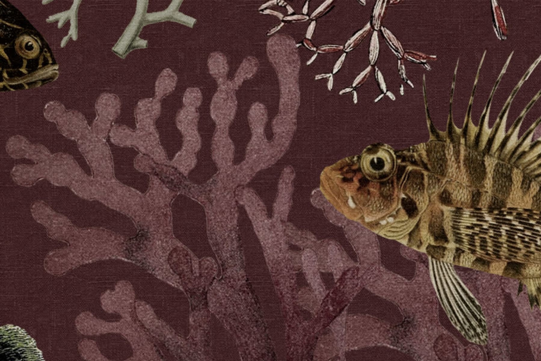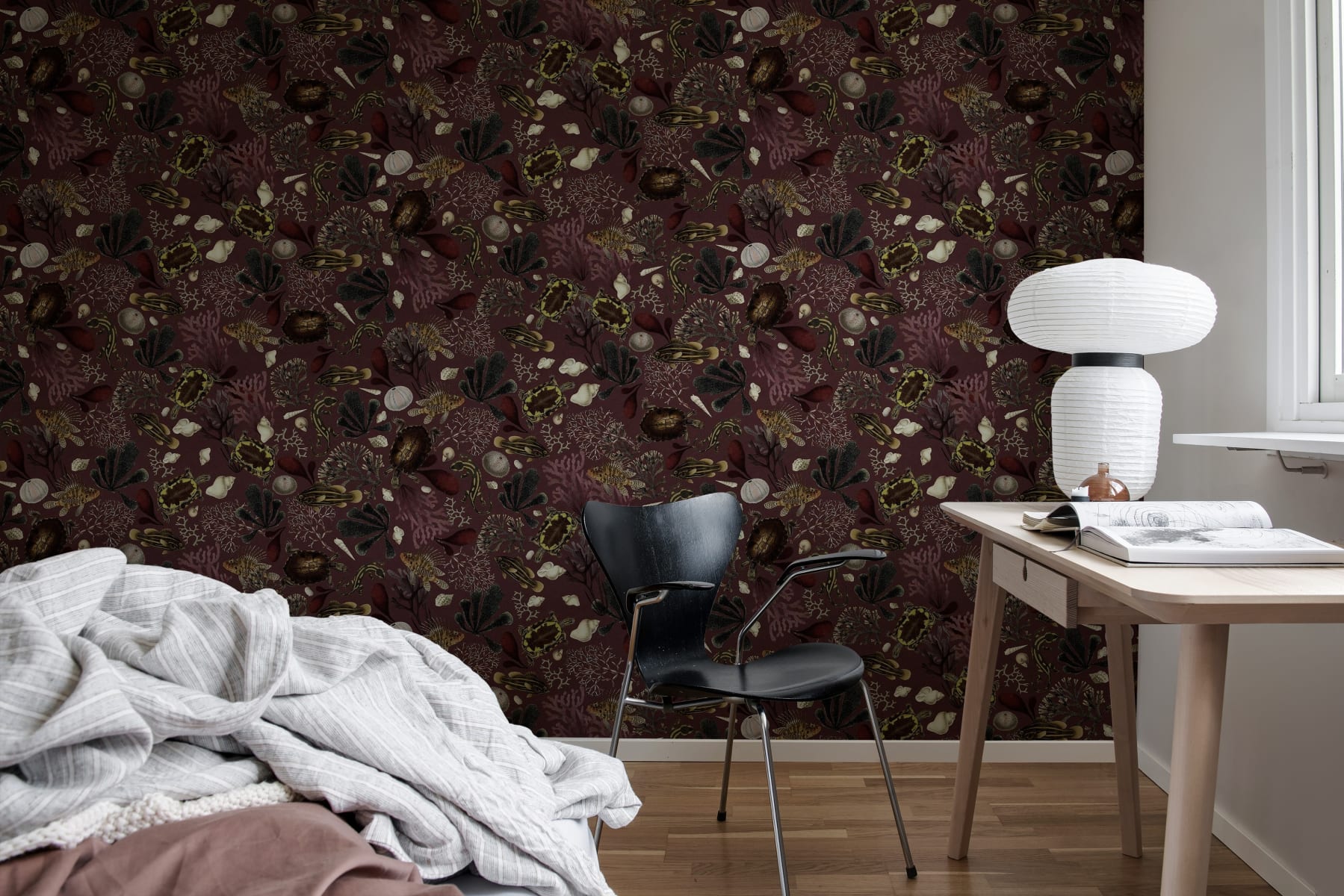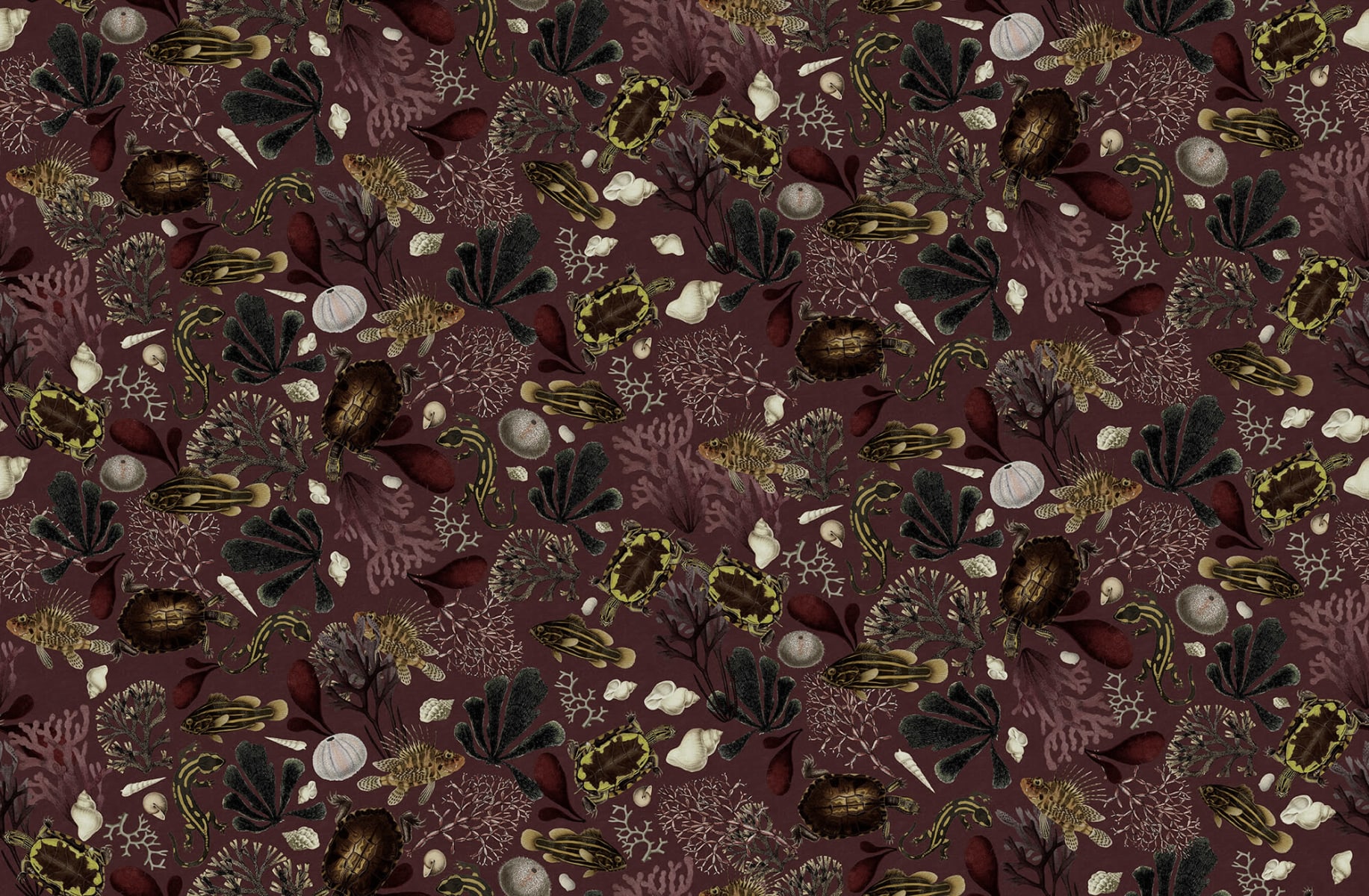 Scufundați-vă într-o lume subacvatică senină cu tapetul nostru Ocean Life, Sunset. Acest design realizat în mod unic aduce o notă marină chiar în spațiul dvs. de locuit. Designul este plin de ilustrații meticulos detaliate cu țestoase, pești, plante oceanice și o multitudine de alte lucruri pe care le găsiți în adânc. Ocean Life, Sunset prezintă un fundal roșu întunecat și delicat.