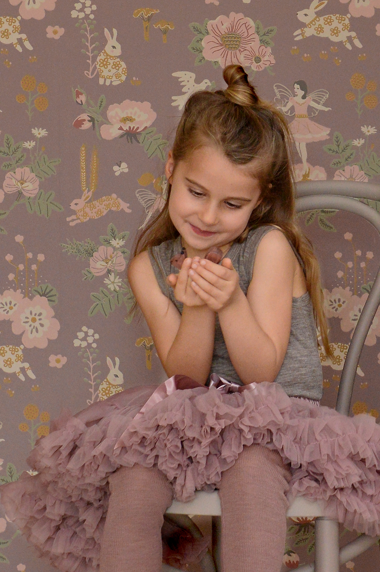 Follow the Wind, Sunny Pink Acest tapet are un design delicat, cu rânduri de păsări galbene ce zboară pe un
