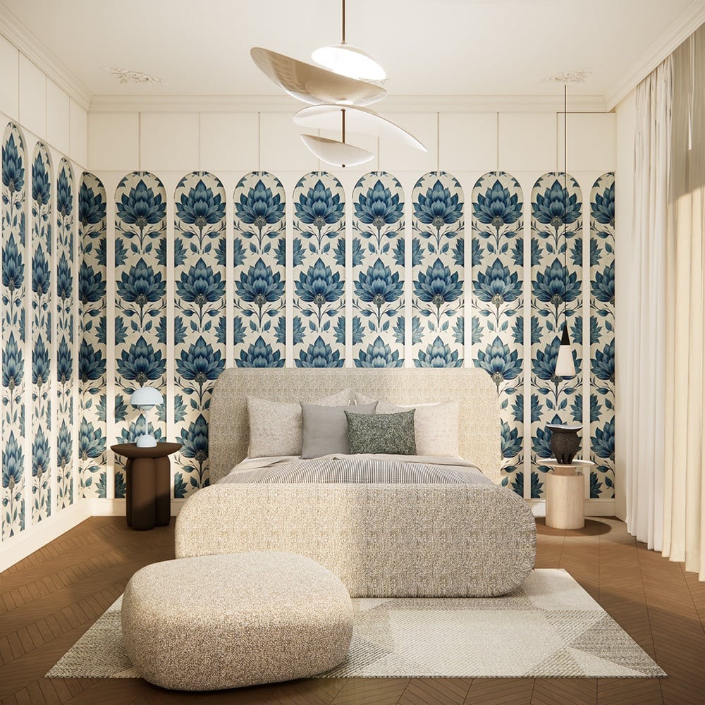 Modelul de tapet Ophelia’s Veil (Cream) din colecția Britannia Unchained transpune aceeași sensibilitate romantică și rafinament decorativ într-o interpretare luminoasă, senină, aproape eterică. Dacă versiunea Blue evocă o melancolie filtrată prin valuri de culoare rece, varianta Cream păstrează poezia designului, dar o învelește într-o aură caldă, blândă, asemenea luminii matinale ce pătrunde prin ferestrele înalte ale unui salon victorian orientat spre est.