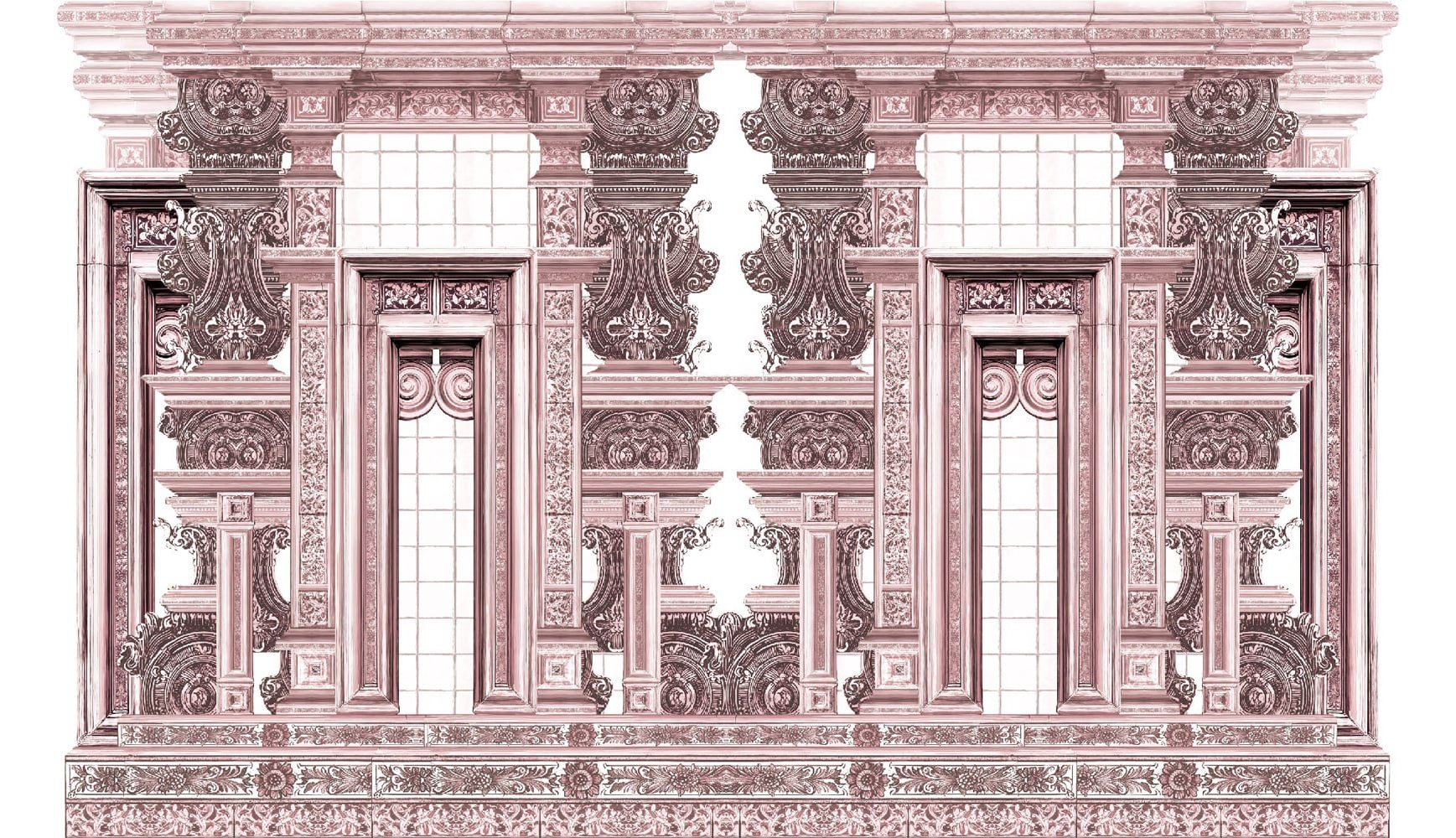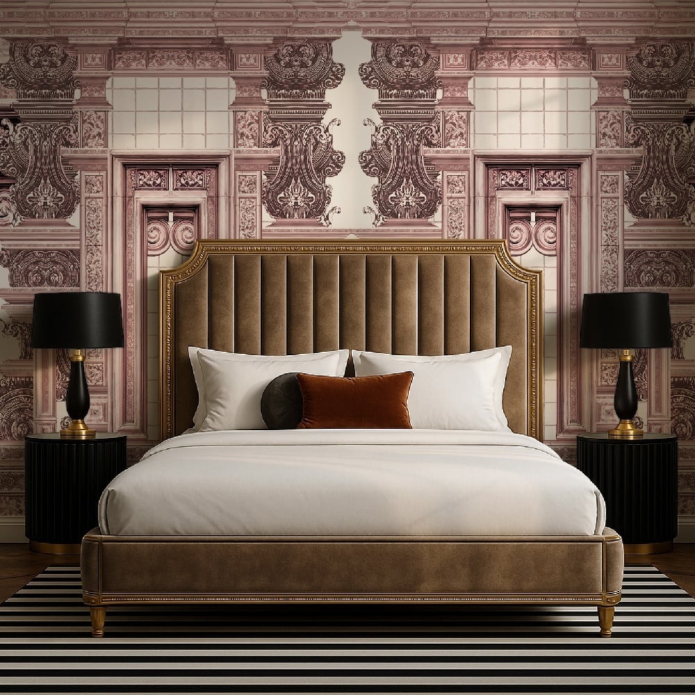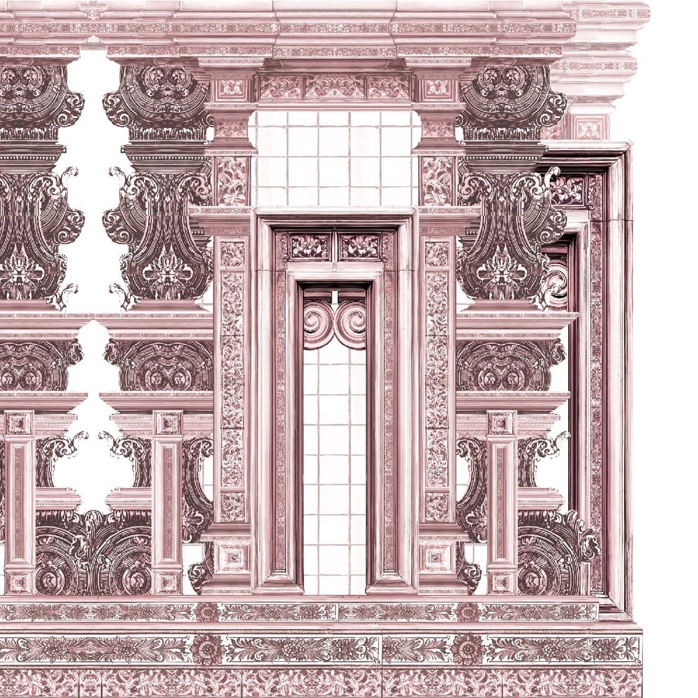 Ornamental Cathedral este punctul culminant al colecției Terracota — un mural de arhitectură monumentală, unde coloanele, arcadele și ornamentația barocă se ridică într-o splendoare poetică. Acest tapet transpune măreția sacră în grandoare interioară.